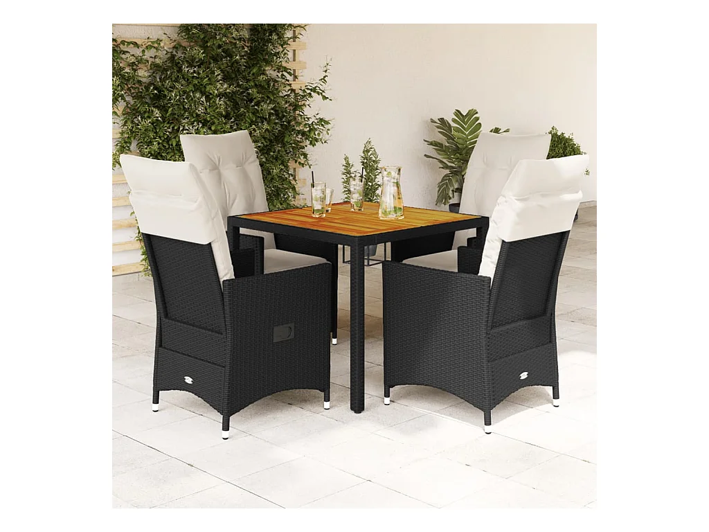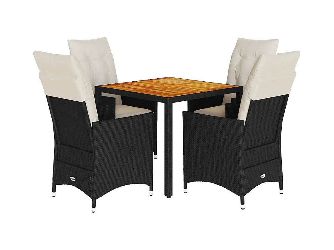 5-delige Tuinset met kussens poly rattan zwart