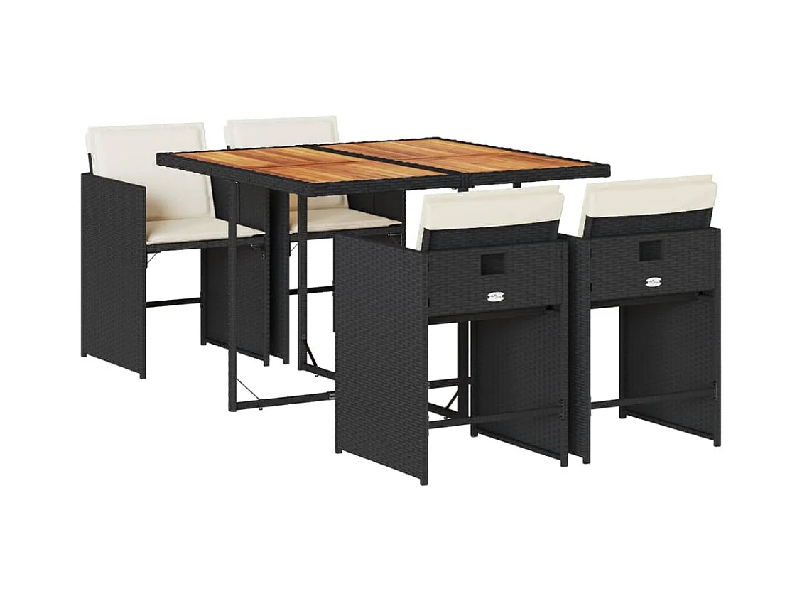 5-delige Tuinset met kussens poly rattan zwart