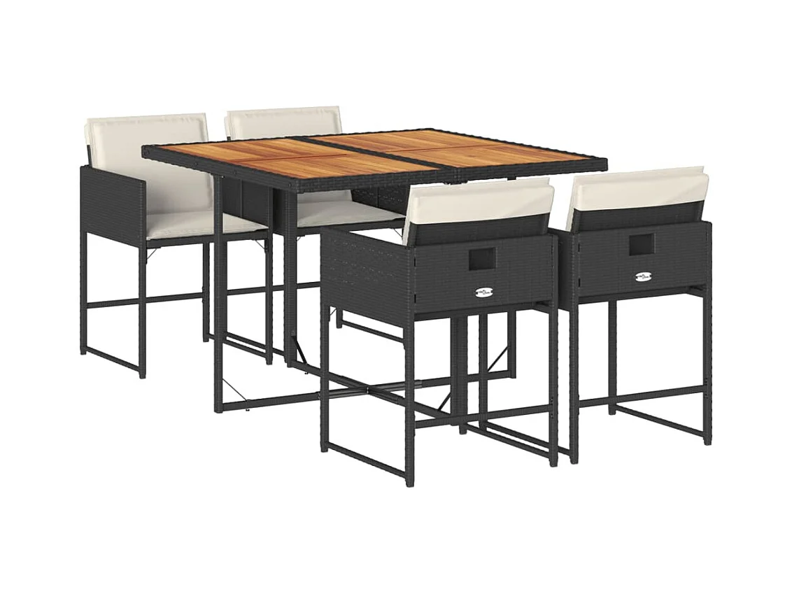 5-delige Tuinset met kussens poly rattan zwart