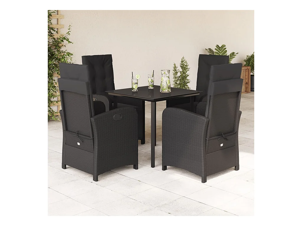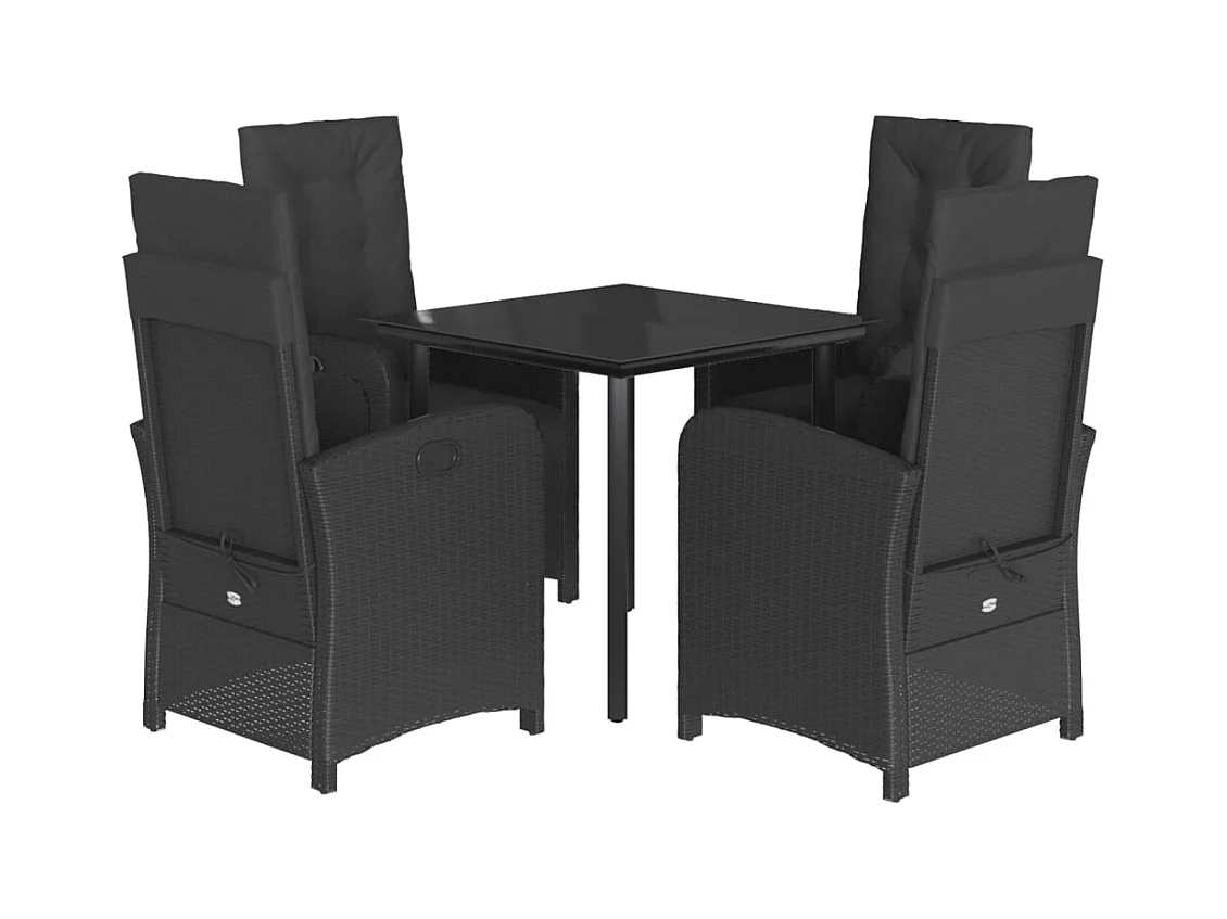 5-delige Tuinset met kussens poly rattan zwart