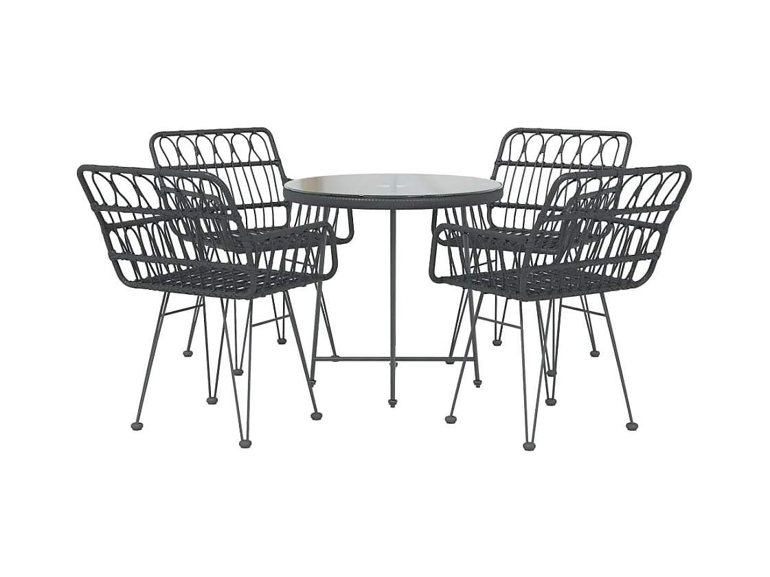 5-delige Tuinset poly rattan en staal zwart NL862439