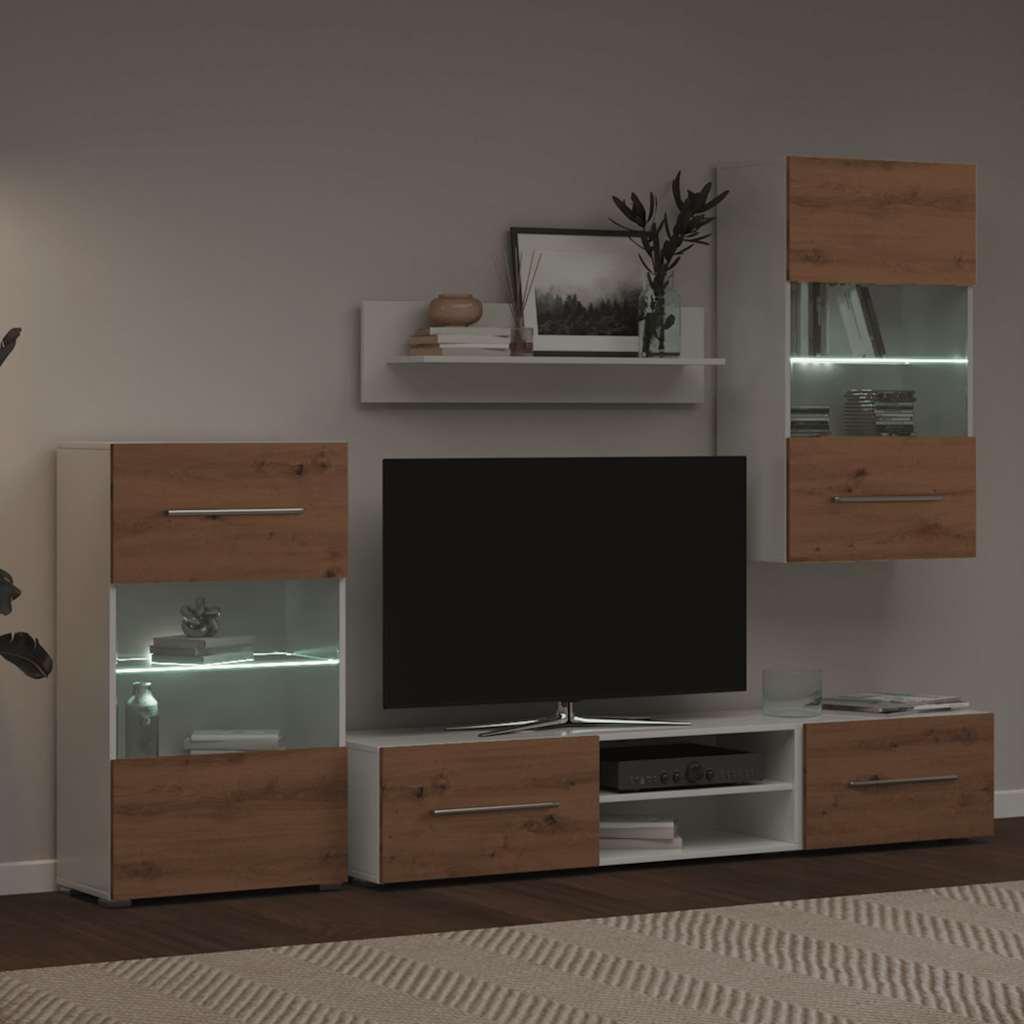 5-delige Tv-meubels met LED bewerkt hout artisanaal eikenkleur