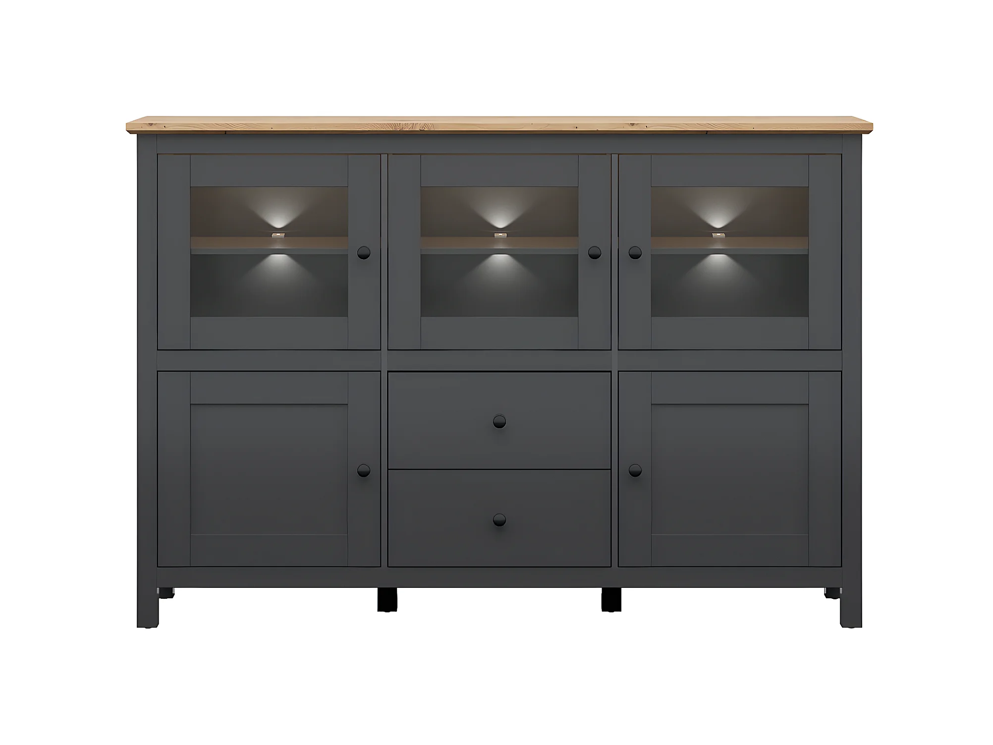 5-deurs dressoir met 2 laden en LED Duck Antracietgrijs en Hout