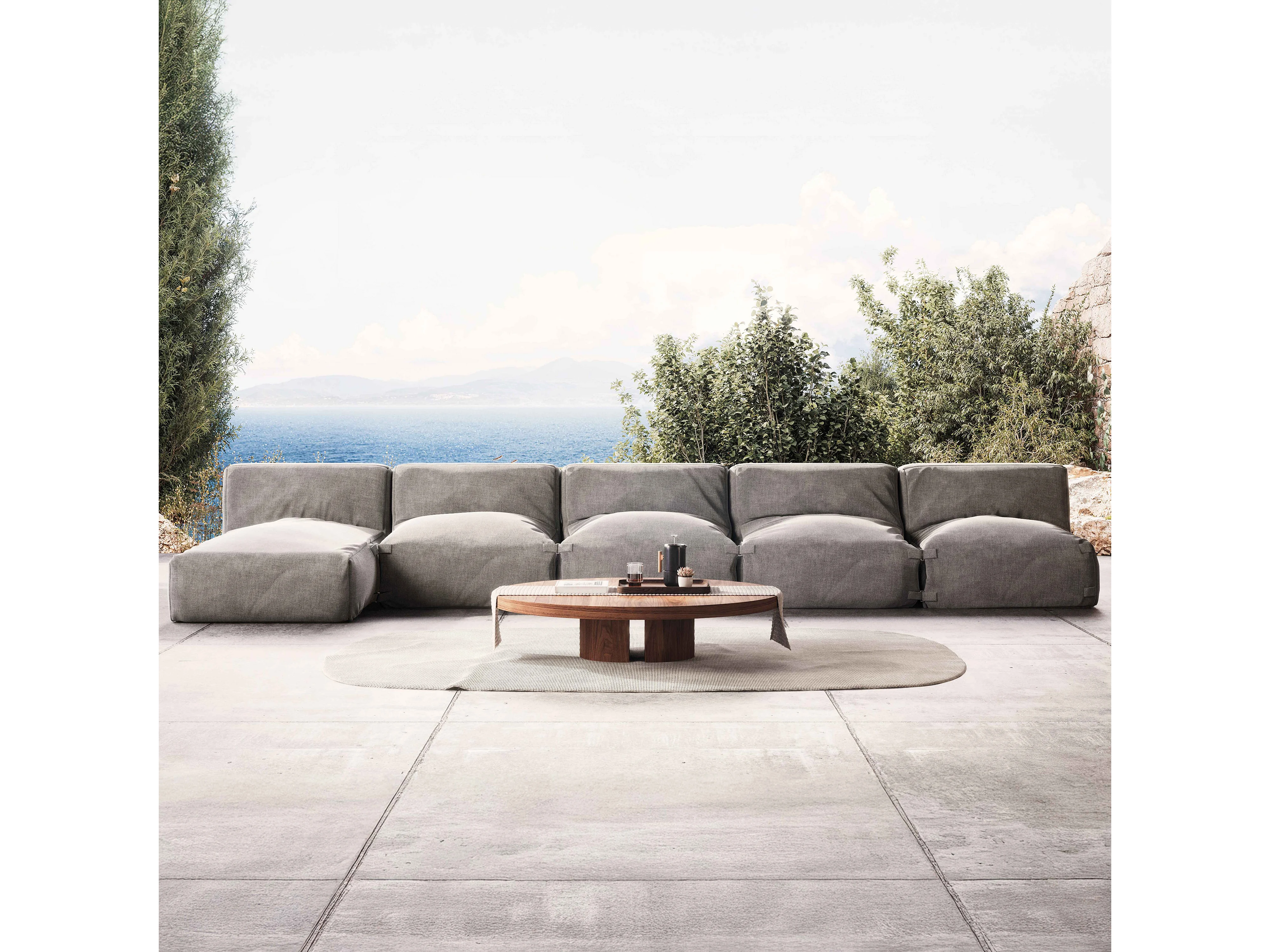 5-zits modulair tuinmeubel met grijze chaise longue