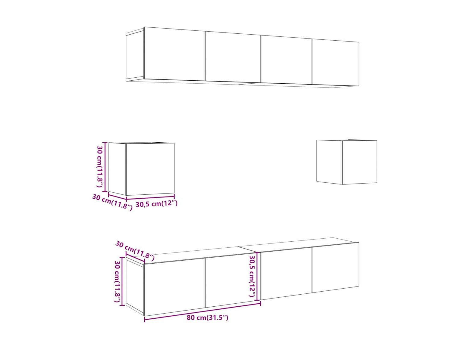 4-delig Tv-meubelset wandmontage bewerkt hout oud houtkleurig