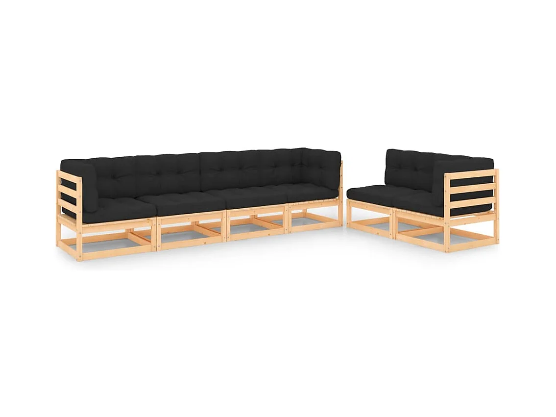 6-delige Loungeset met kussens massief grenenhout
