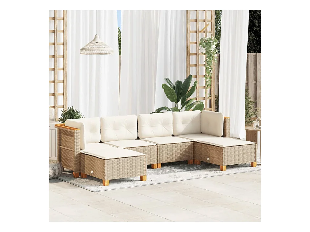 6-delige Loungeset met kussens poly rattan beige