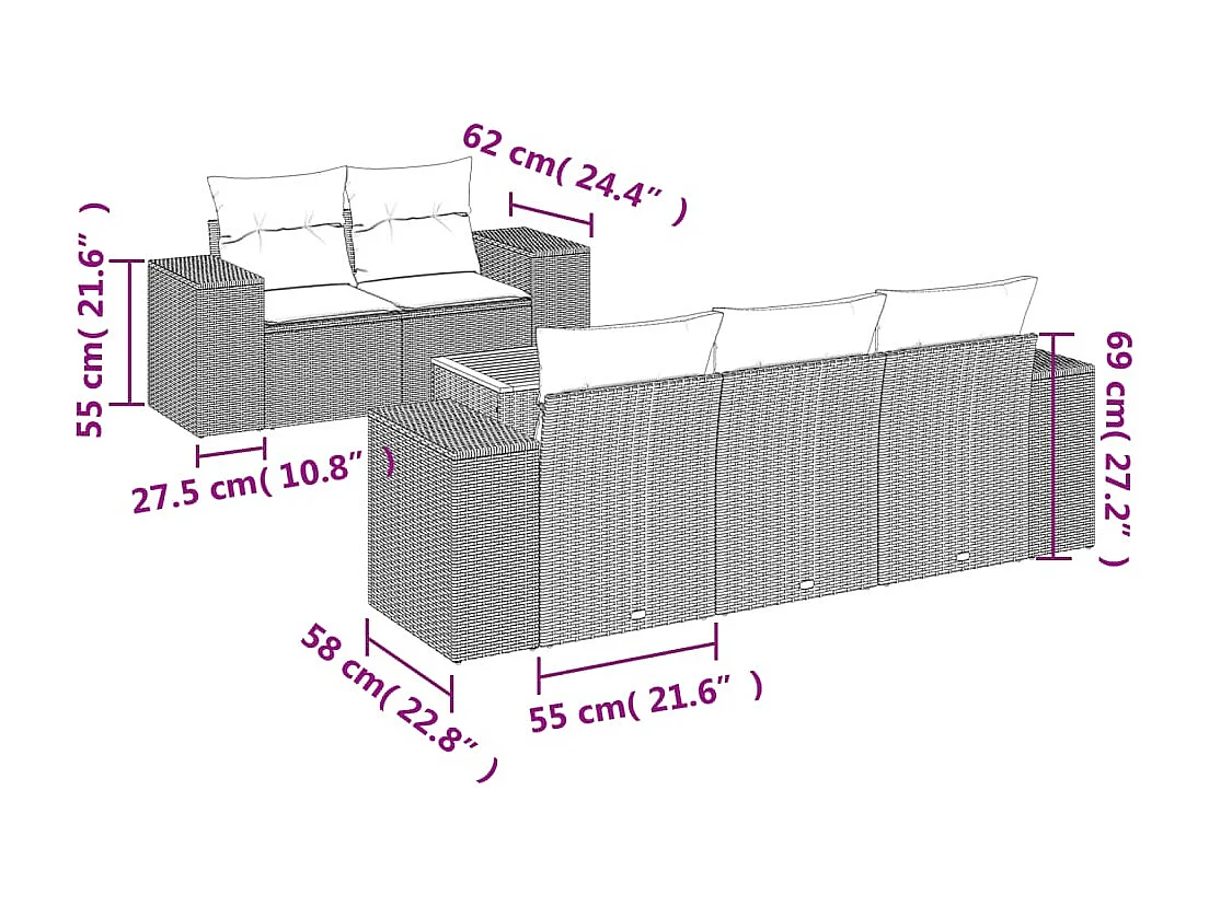 6-delige Loungeset met kussens poly rattan beige