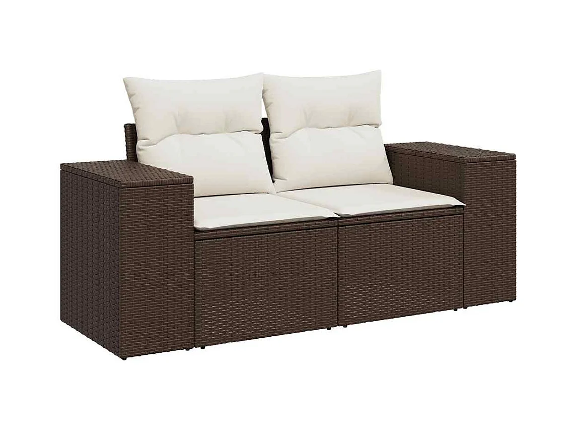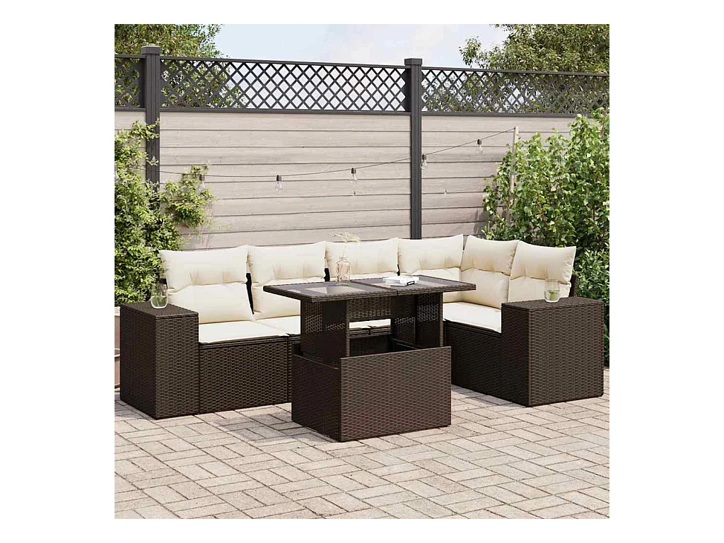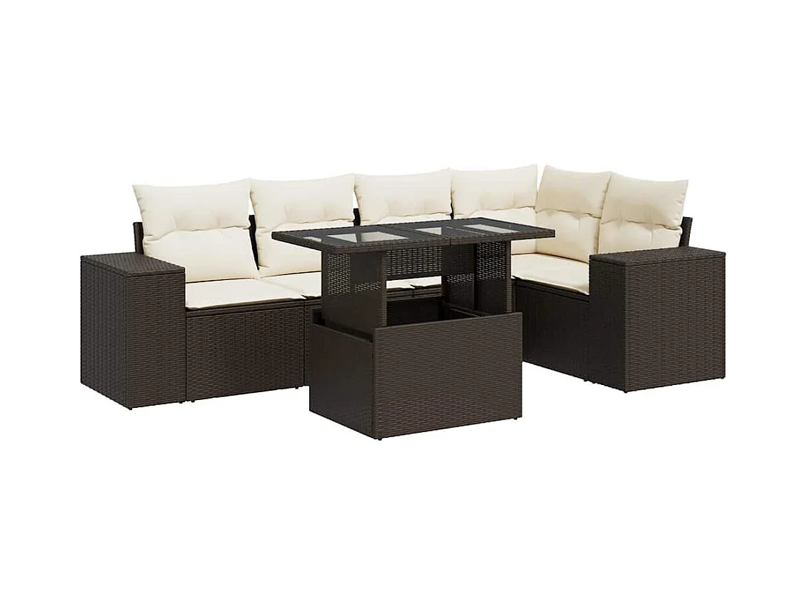 6-delige Loungeset met kussens poly rattan bruin
