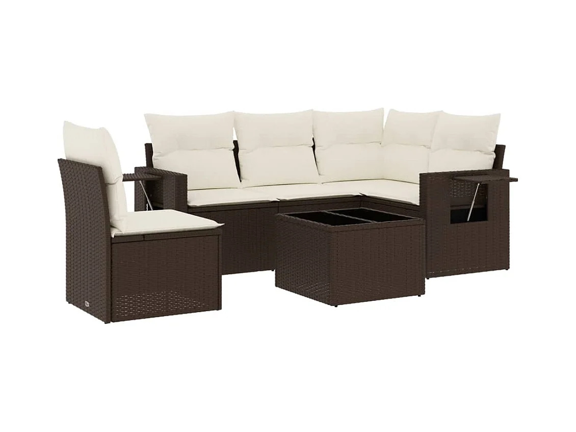 6-delige Loungeset met kussens poly rattan bruin