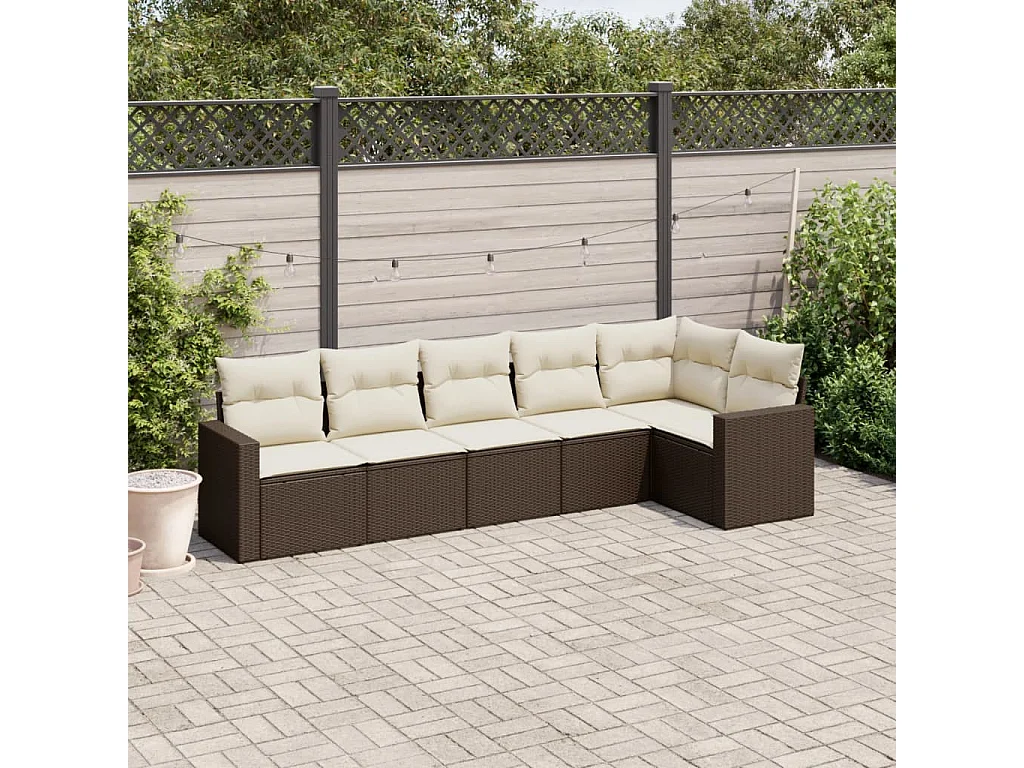 Tuinmeubelen met kussens 6 stuks bruin geweven hars