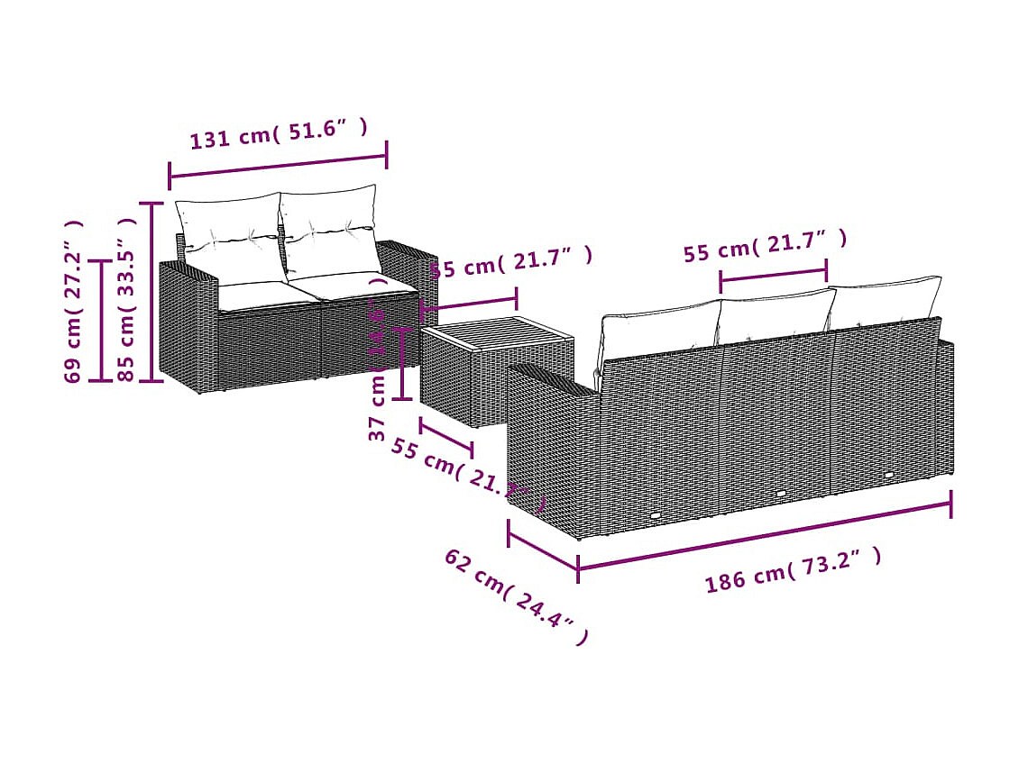 5-delige Loungeset met kussens poly rattan beige