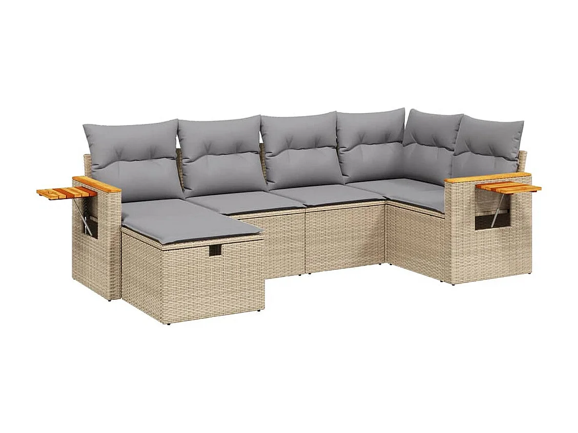6-delige Loungeset met kussens poly rattan gemengd beige
