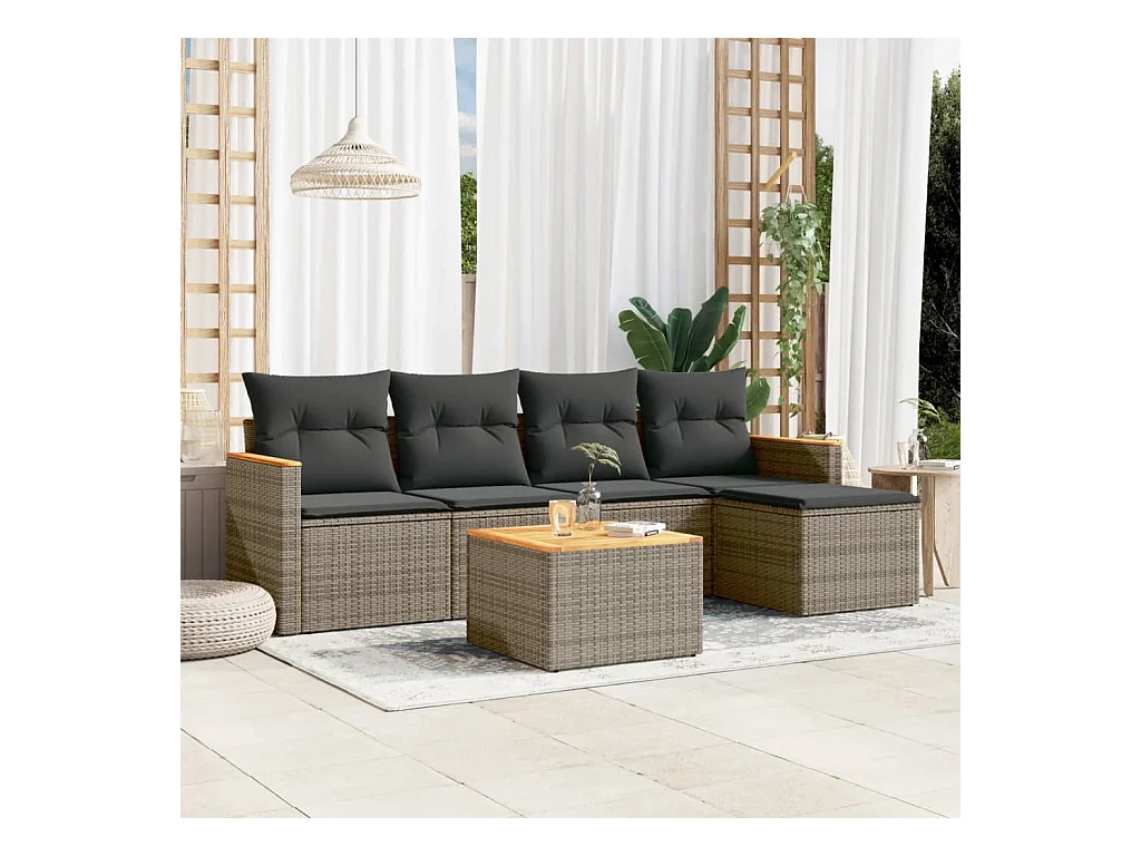 6-delige Loungeset met kussens poly rattan acacia grijs