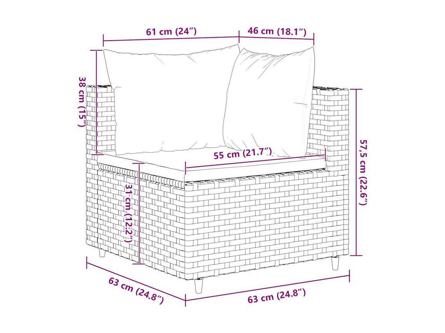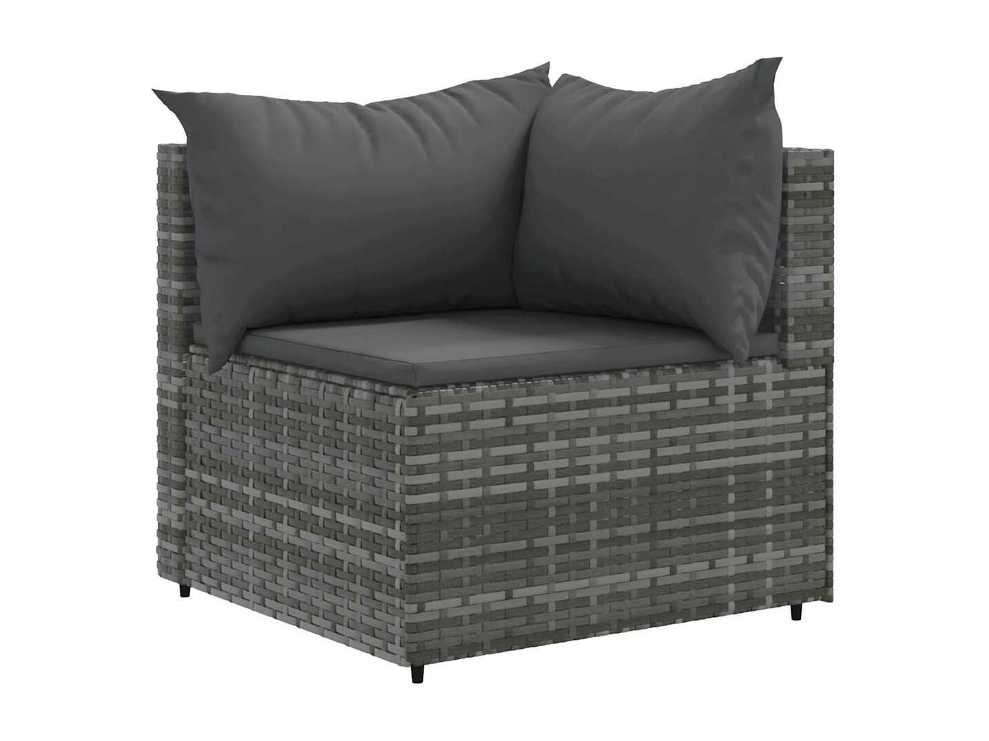 7-delige Loungeset met kussens poly rattan grijs