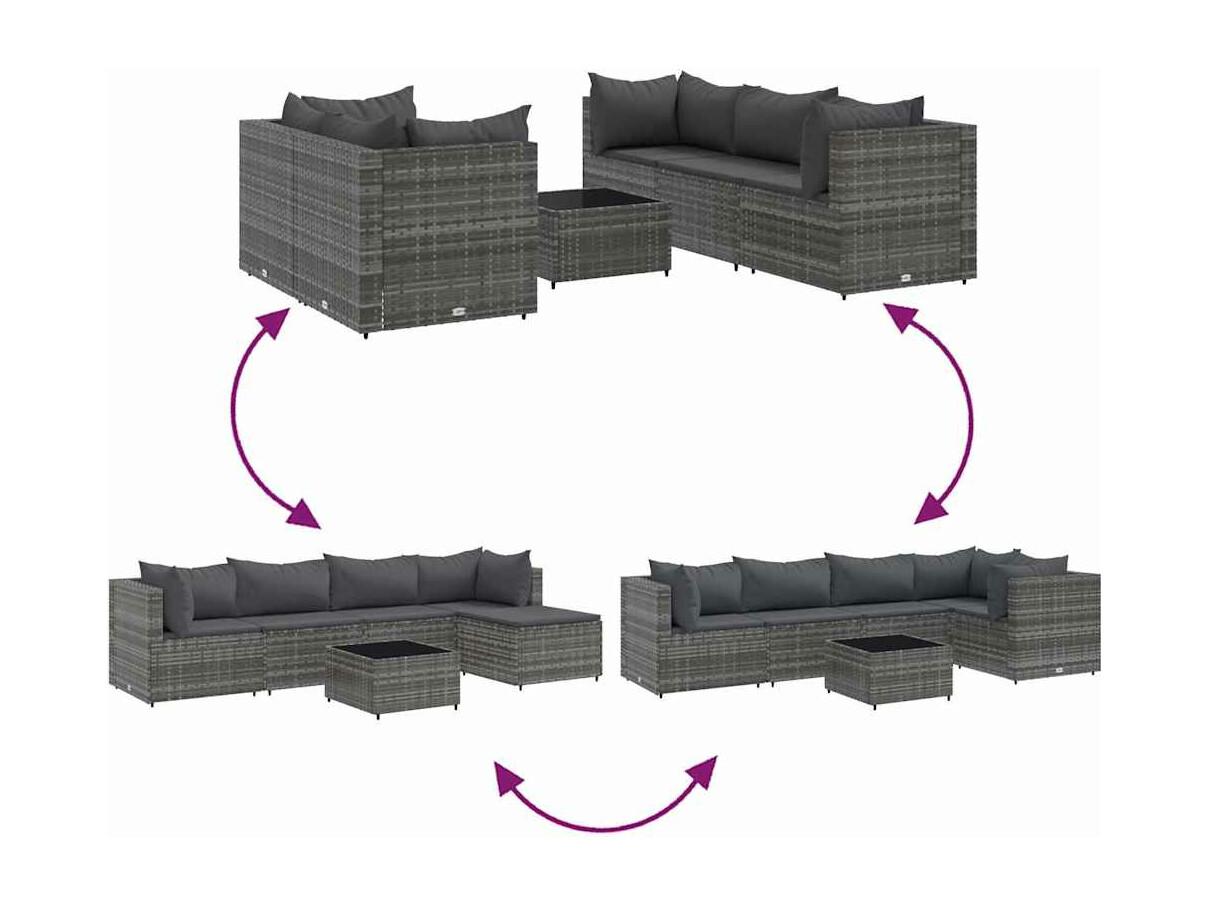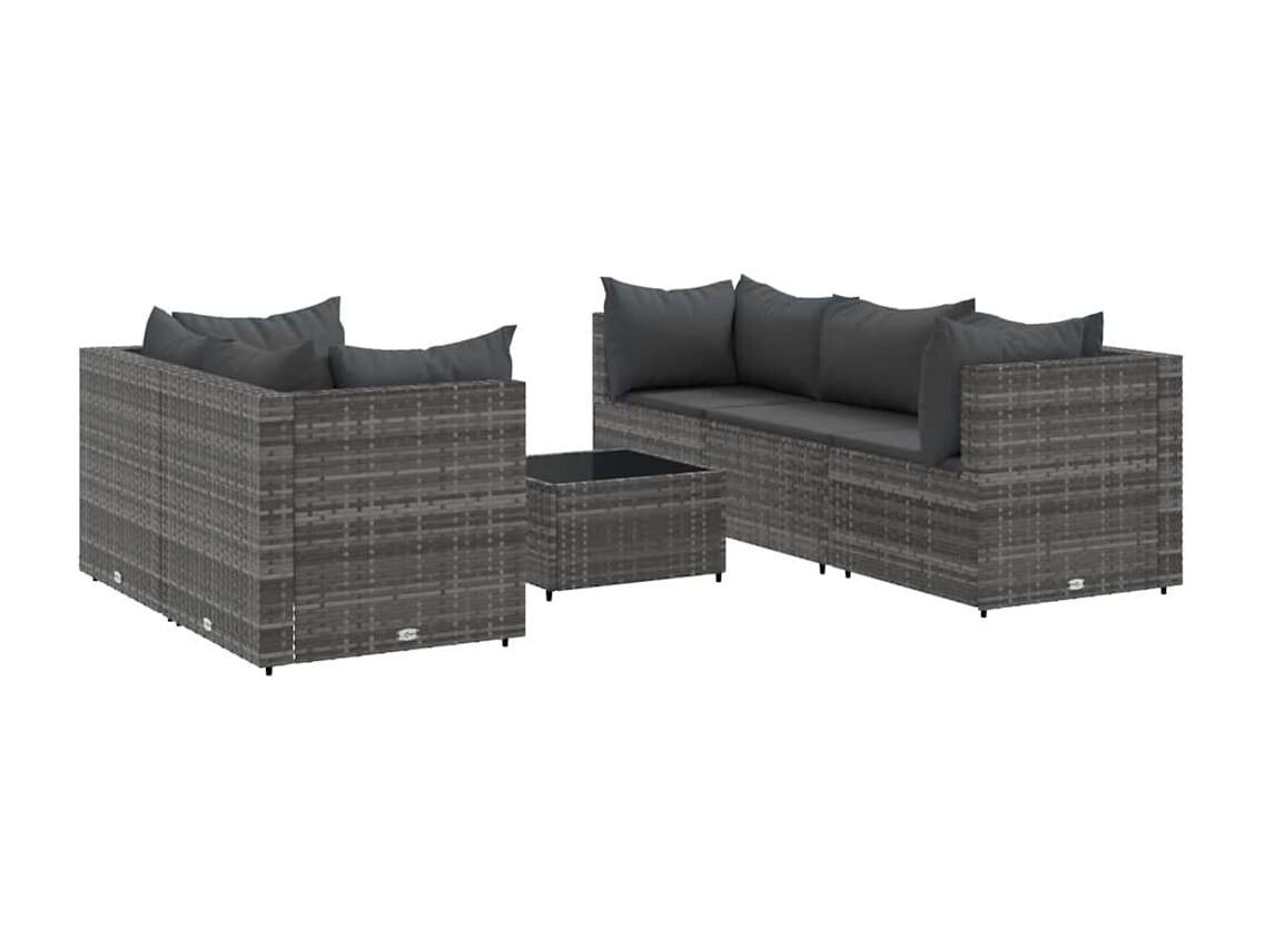 6-delige Loungeset met kussens poly rattan grijs