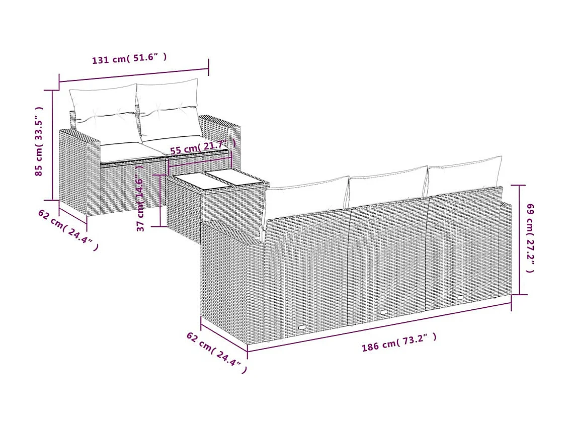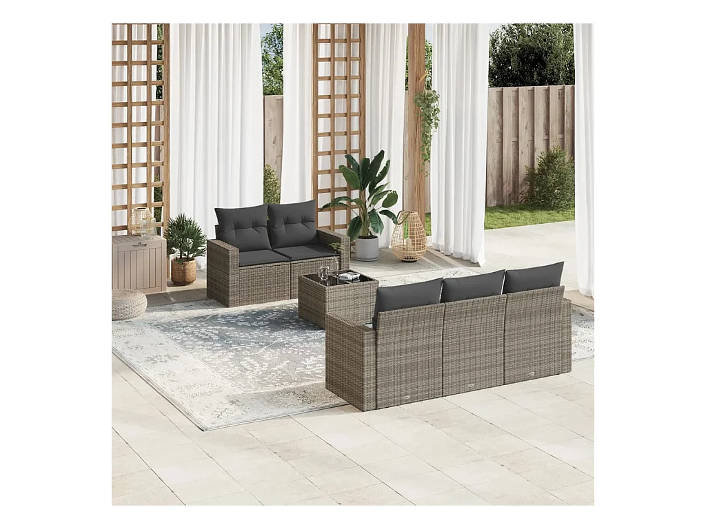 Tuinmeubelen met kussens 7 stuks grijs geweven hars