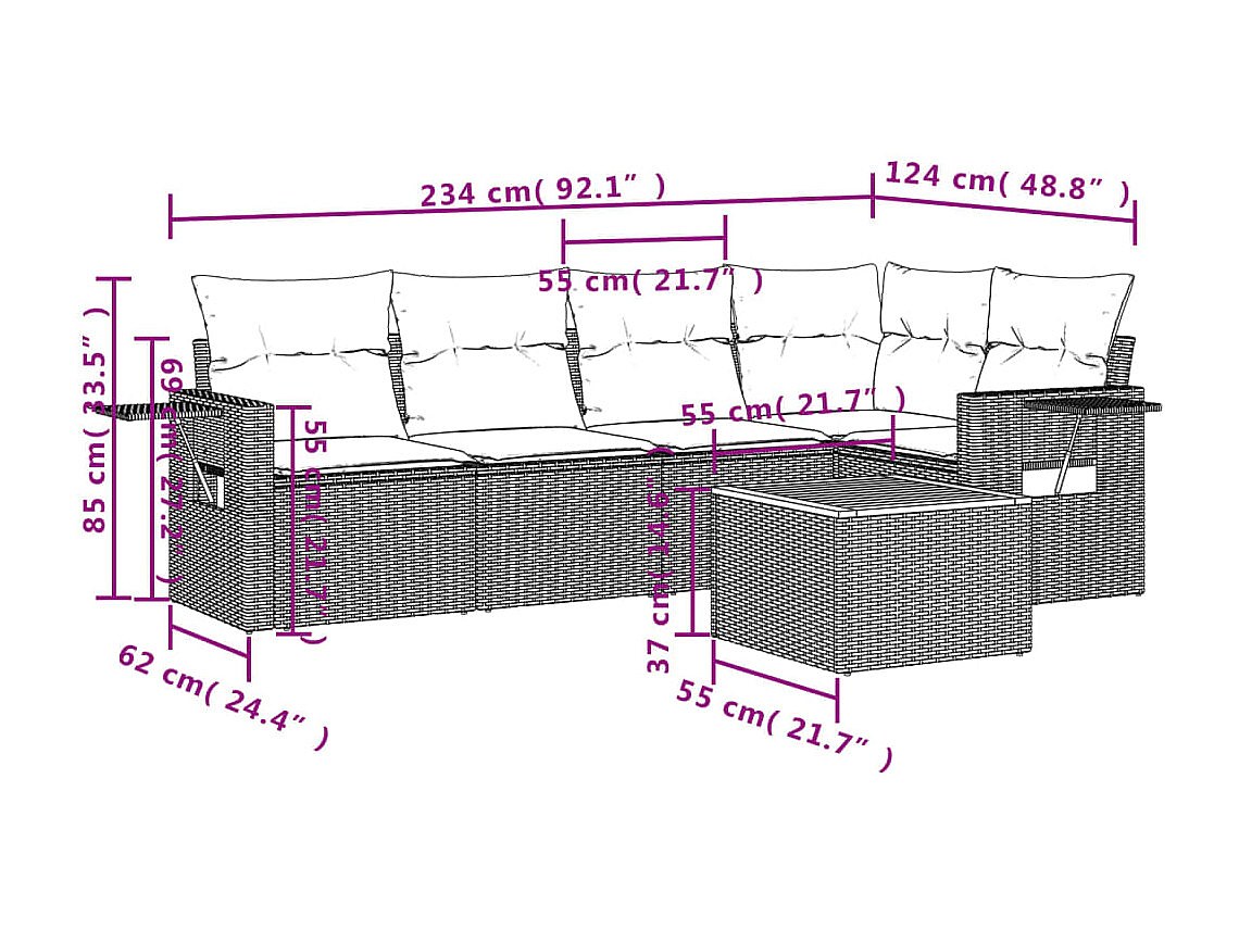 5-delige Loungeset met kussens poly rattan lichtgrijs