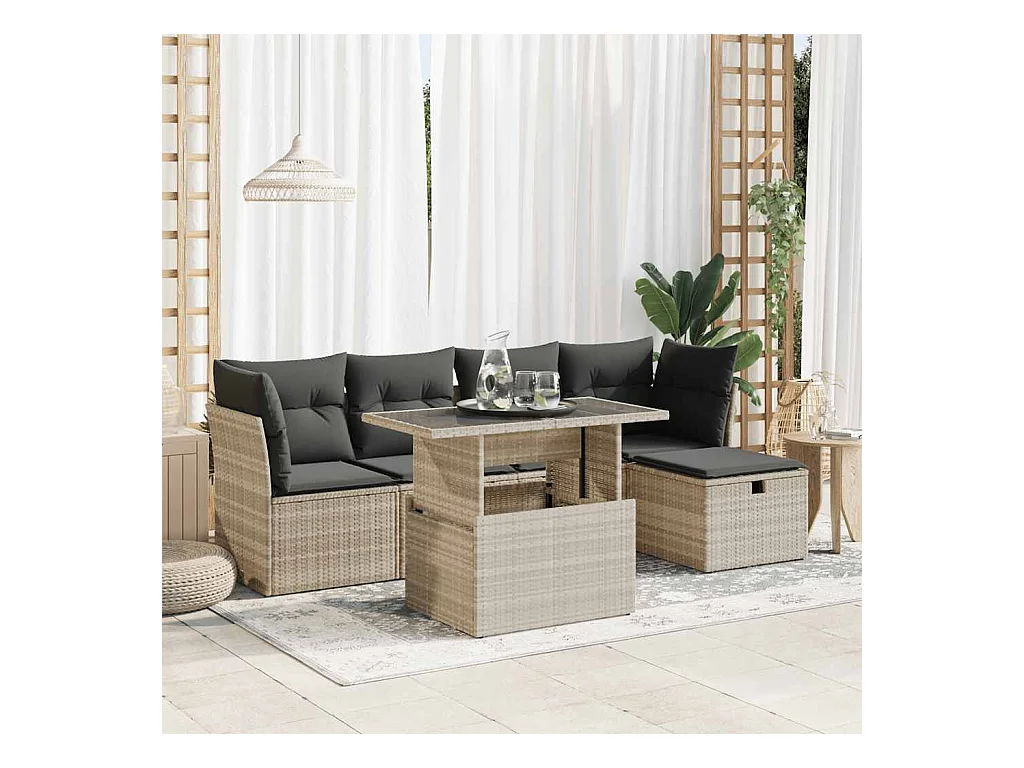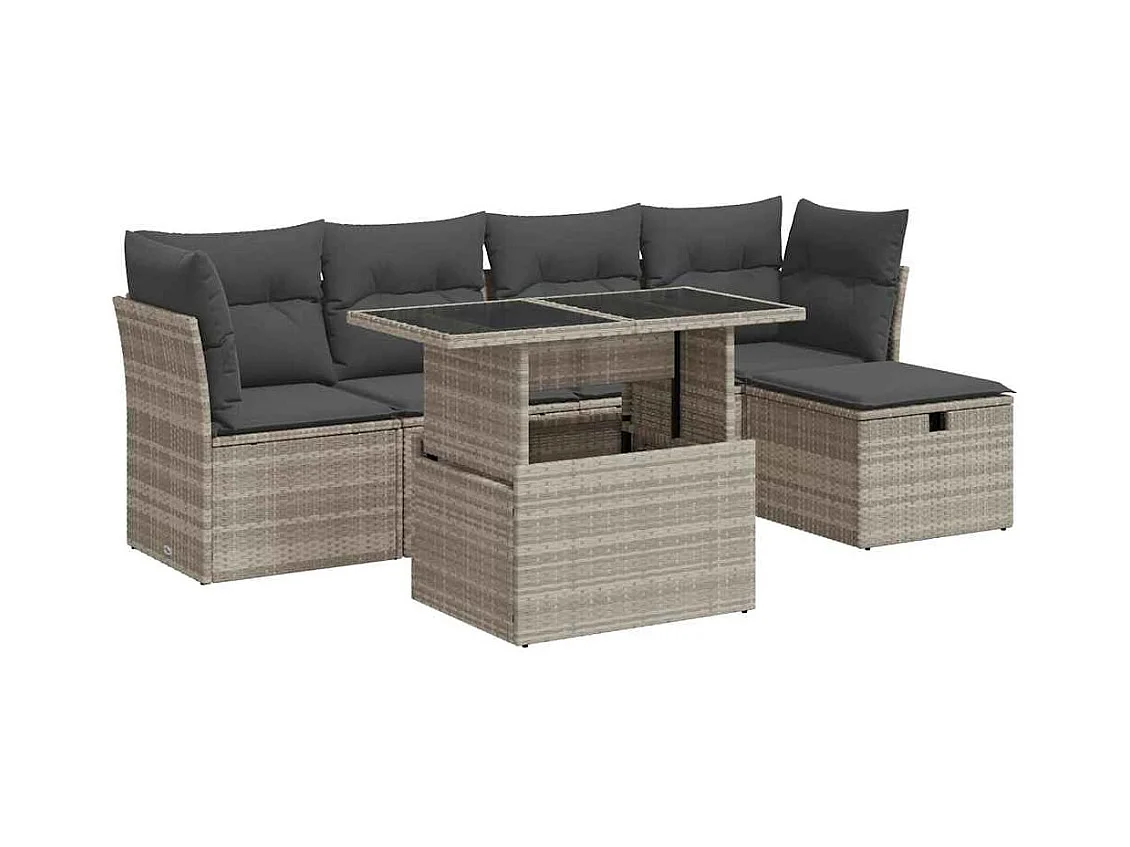 6-delige Loungeset met kussens poly rattan lichtgrijs