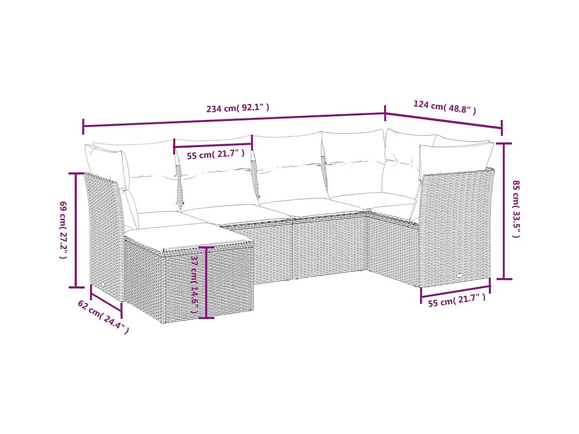 6-delige Loungeset met kussens poly rattan lichtgrijs