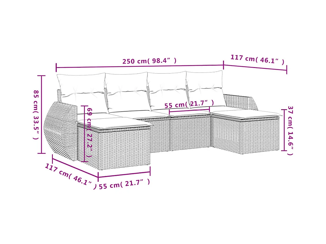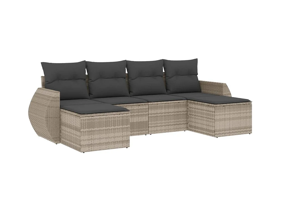 6-delige Loungeset met kussens poly rattan lichtgrijs