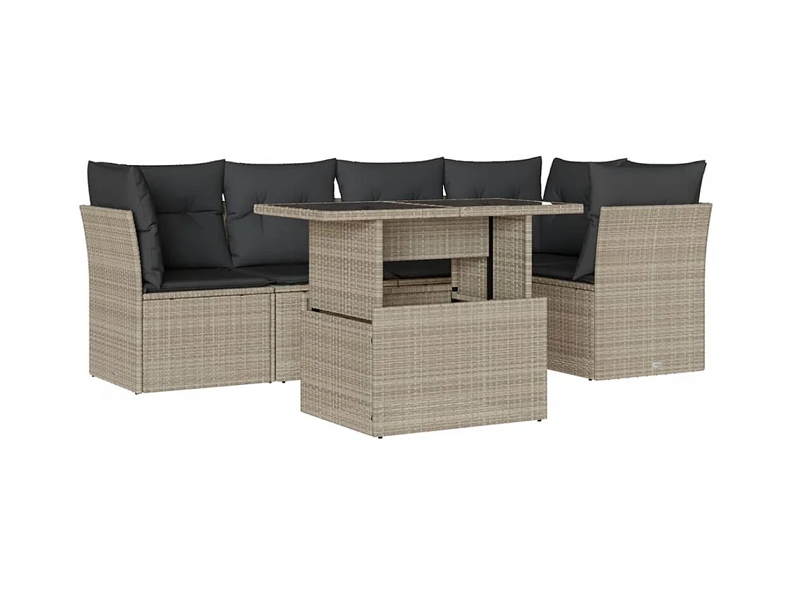 6-delige Loungeset met kussens poly rattan lichtgrijs
