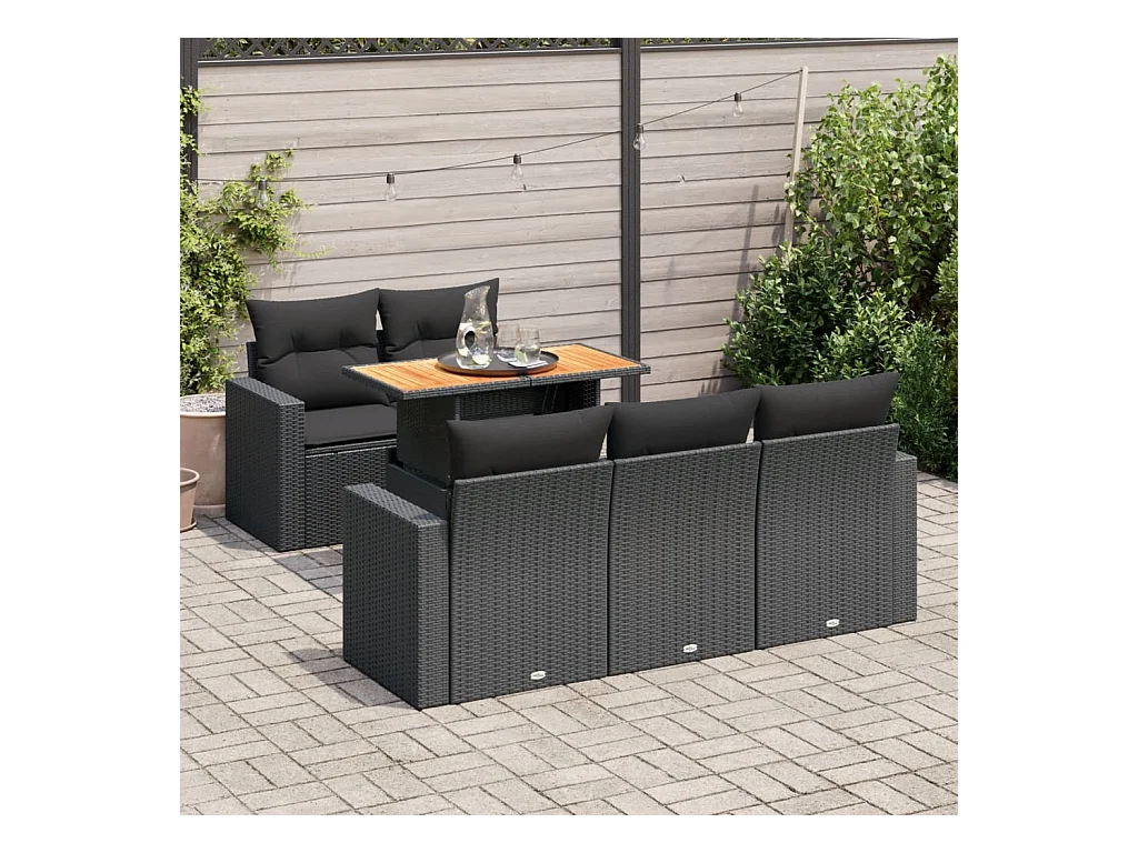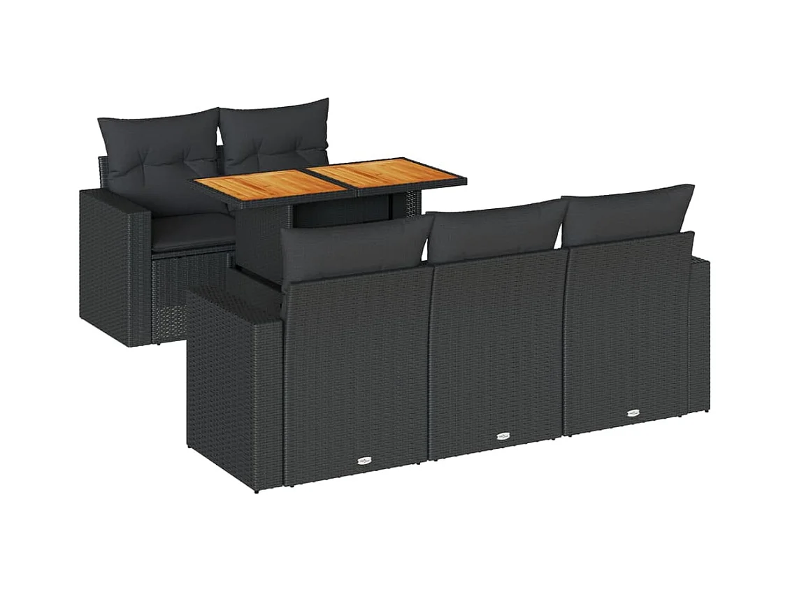 6-delige Loungeset met kussens poly rattan acacia zwart