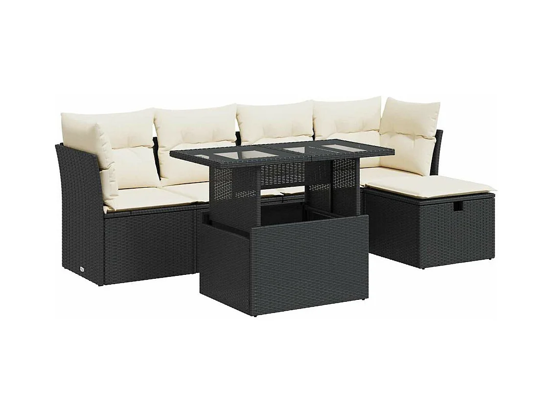 5-delige Loungeset met kussens poly rattan acacia zwart