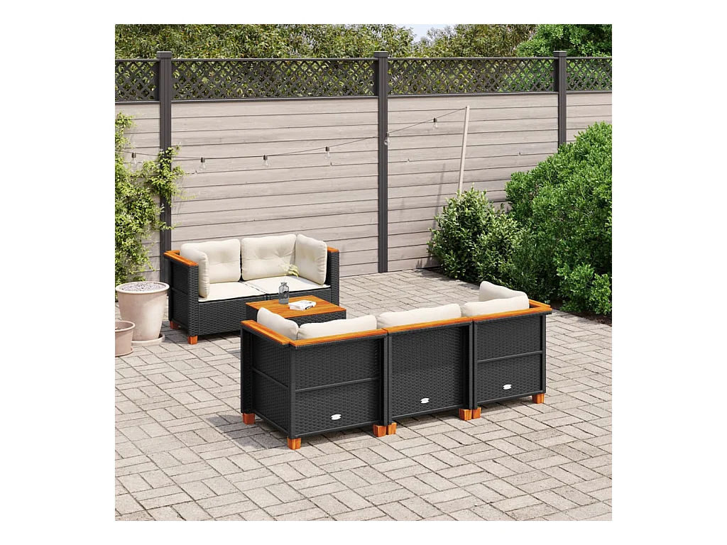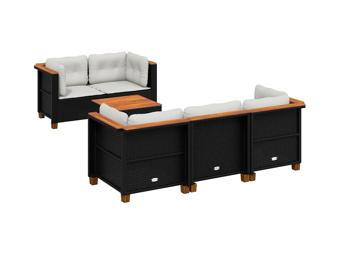 6-delige Loungeset met kussens poly rattan zwart