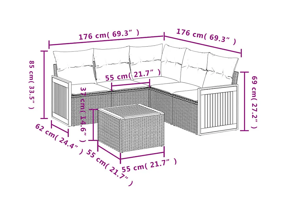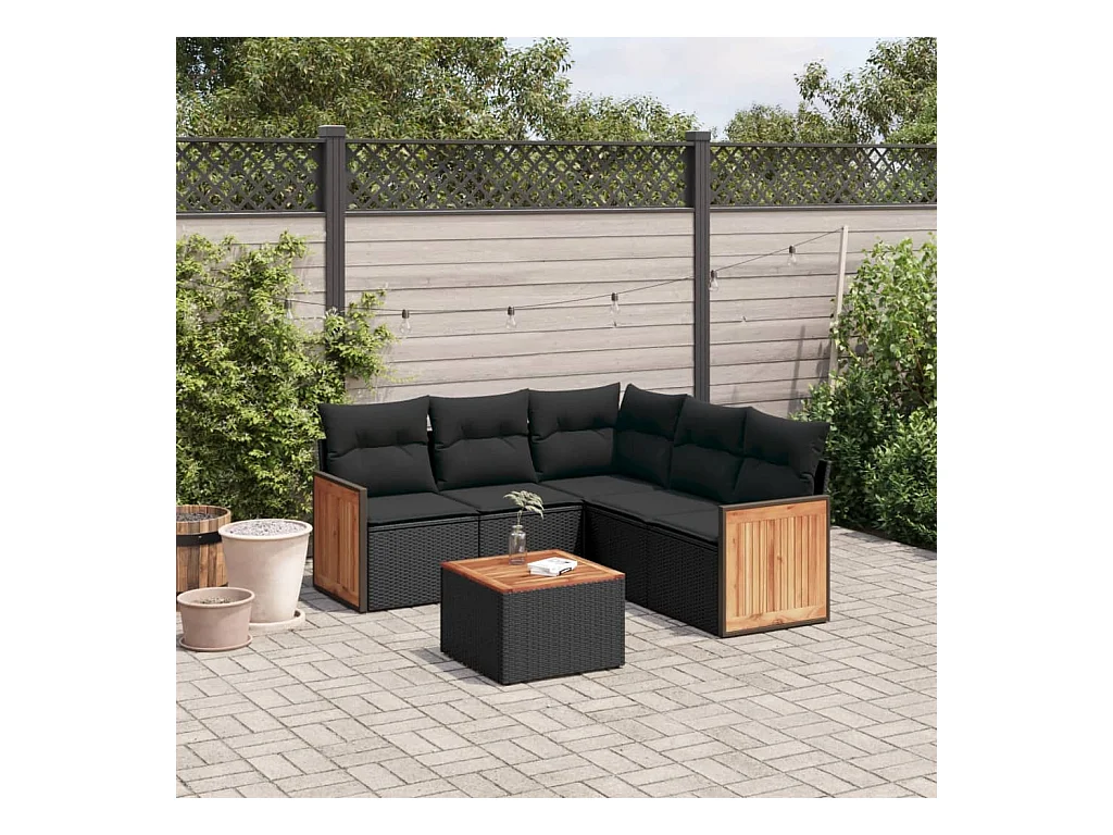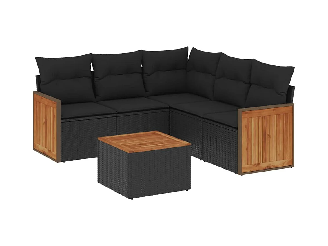 6-delige Loungeset met kussens poly rattan acacia zwart