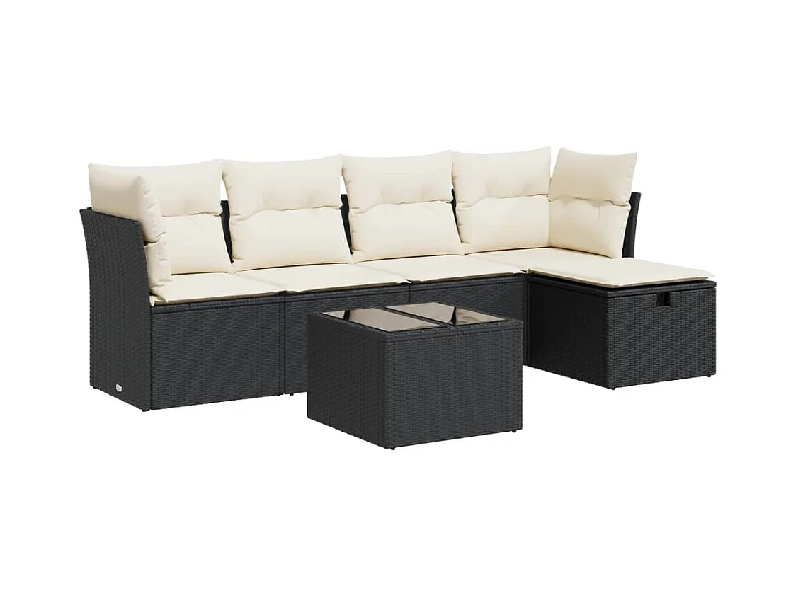 6-delige Loungeset met kussens poly rattan acacia zwart