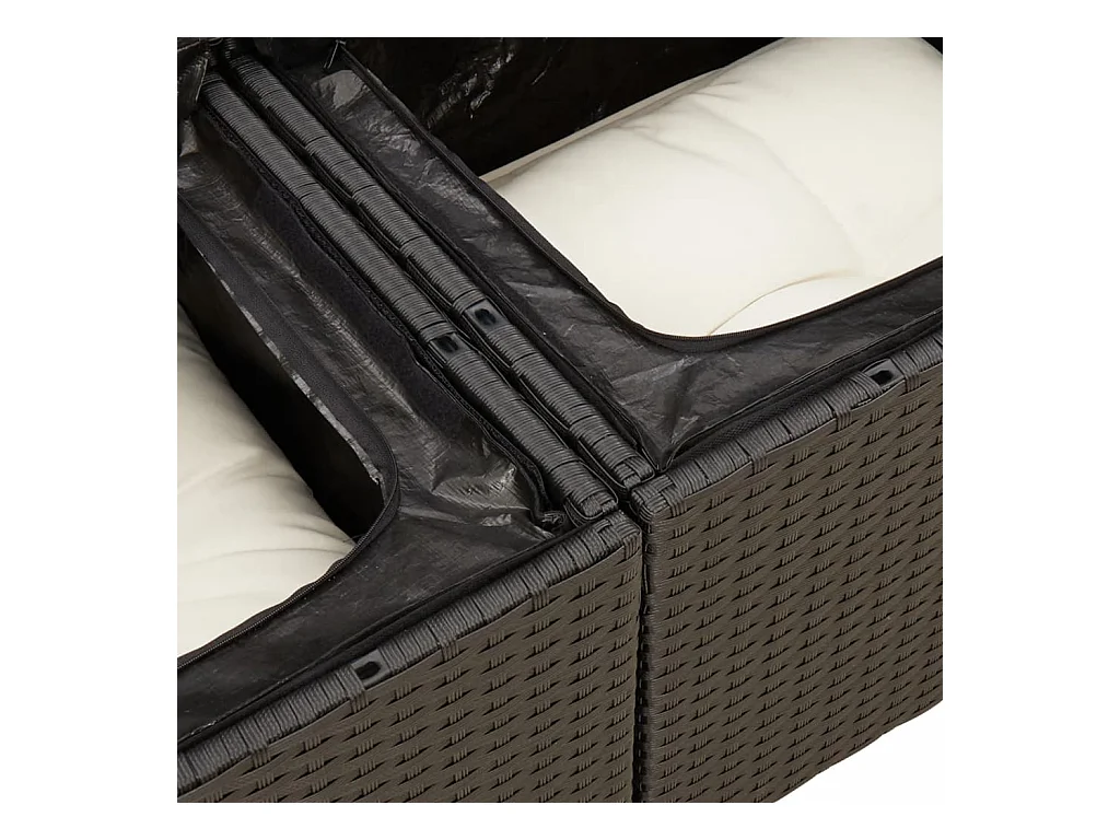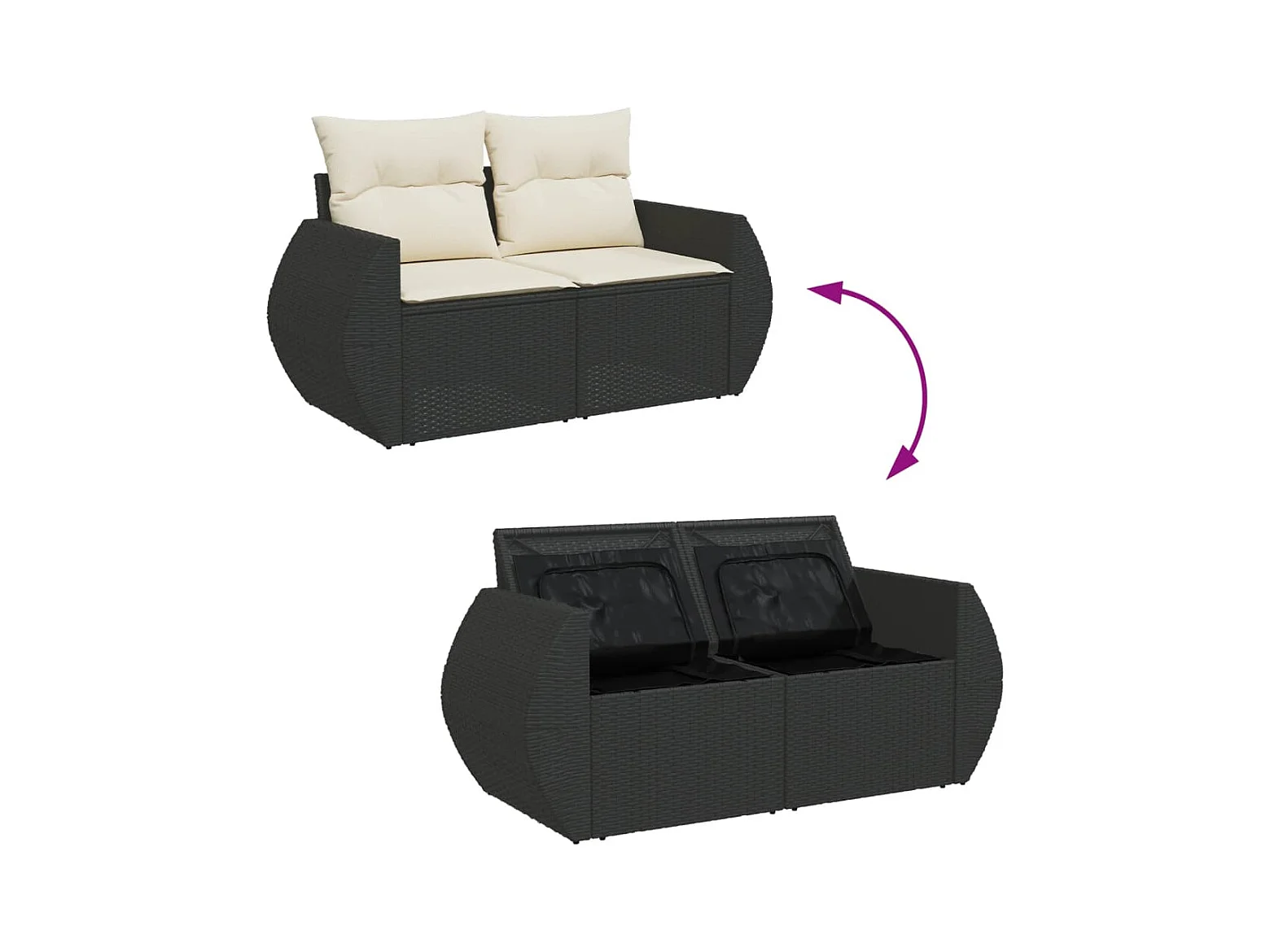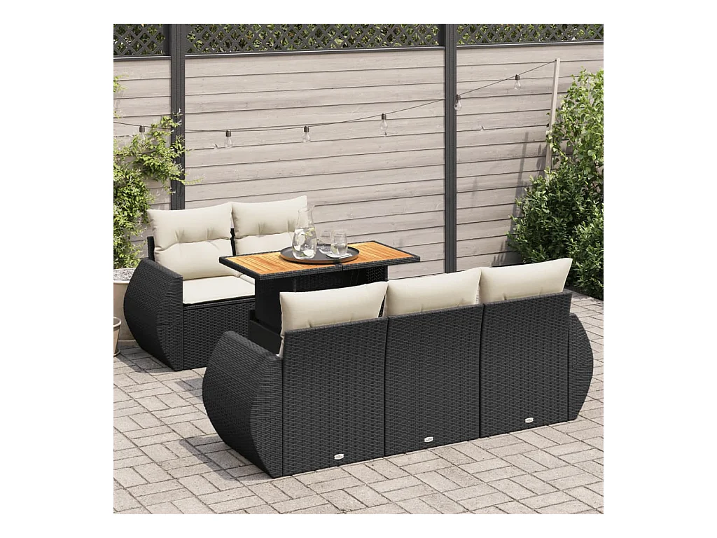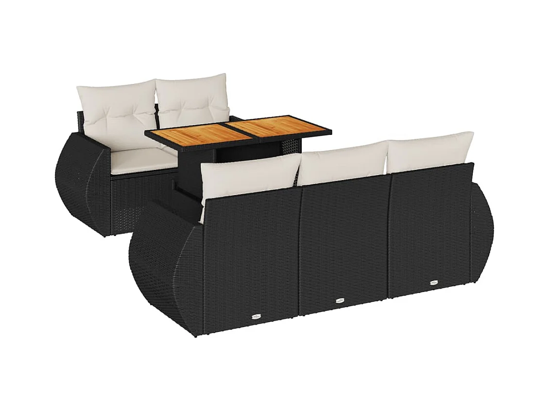 6-delige Loungeset met kussens poly rattan acacia zwart