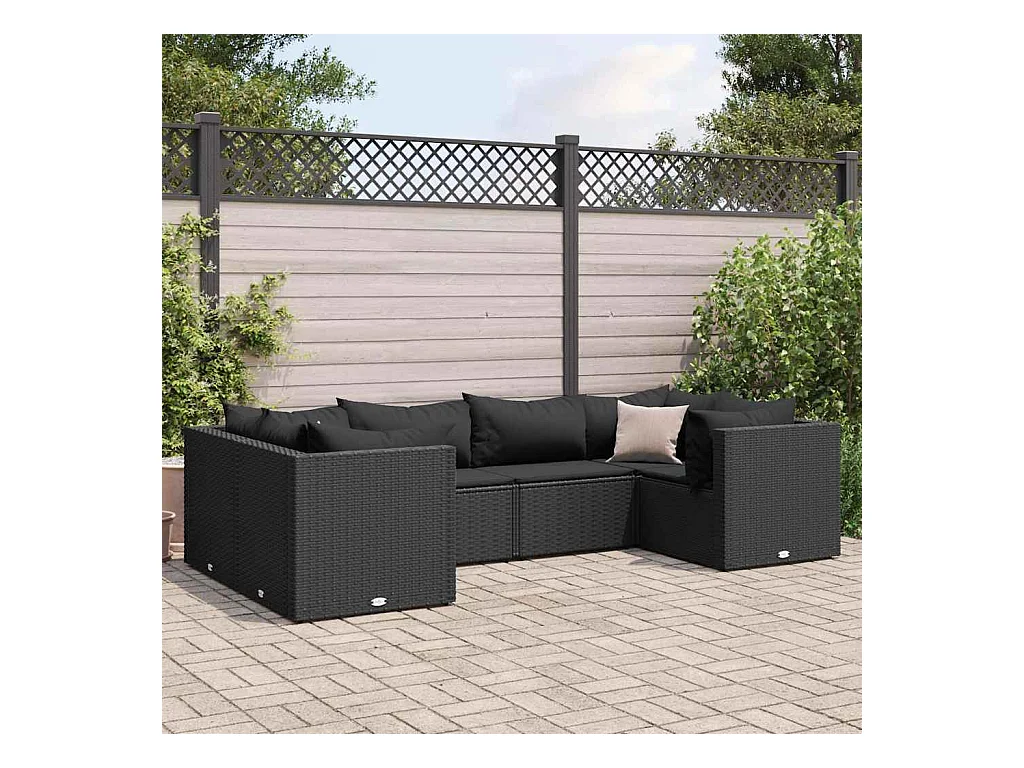 6-delige Loungeset met kussens poly rattan zwart
