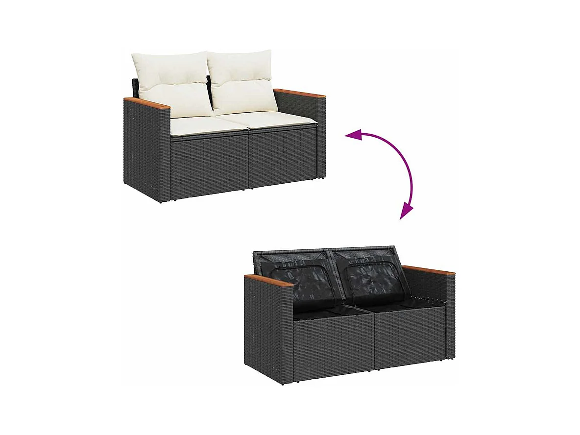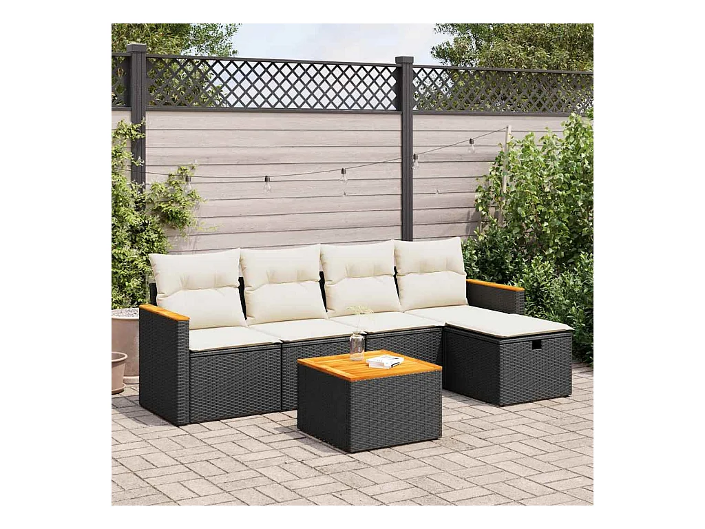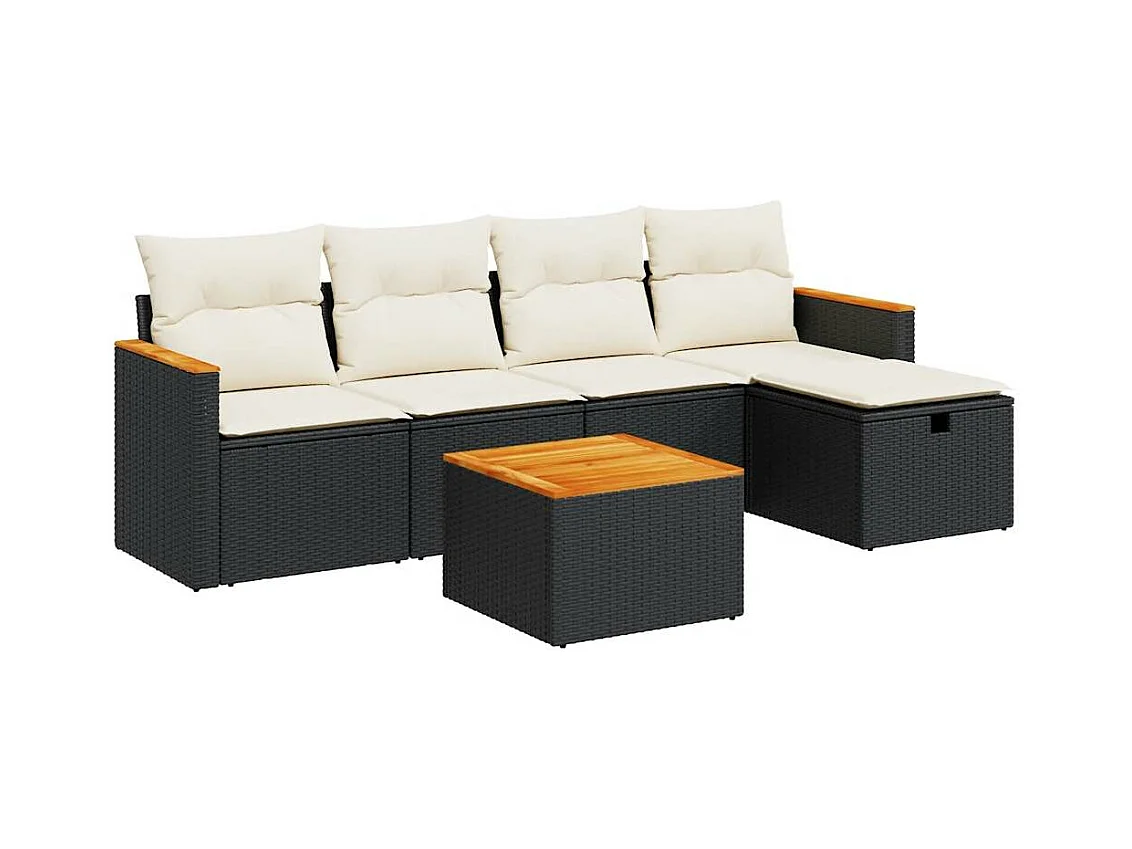 6-delige Loungeset met kussens poly rattan acacia zwart