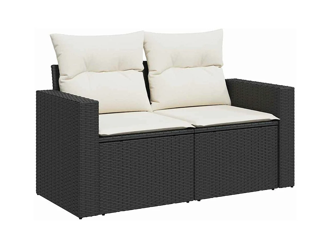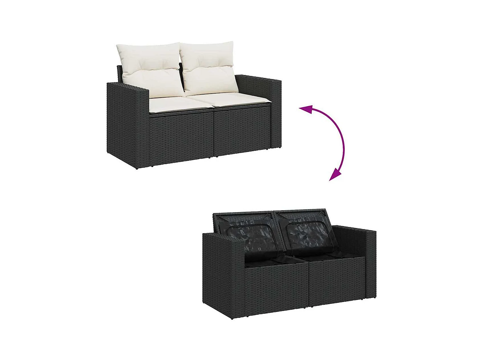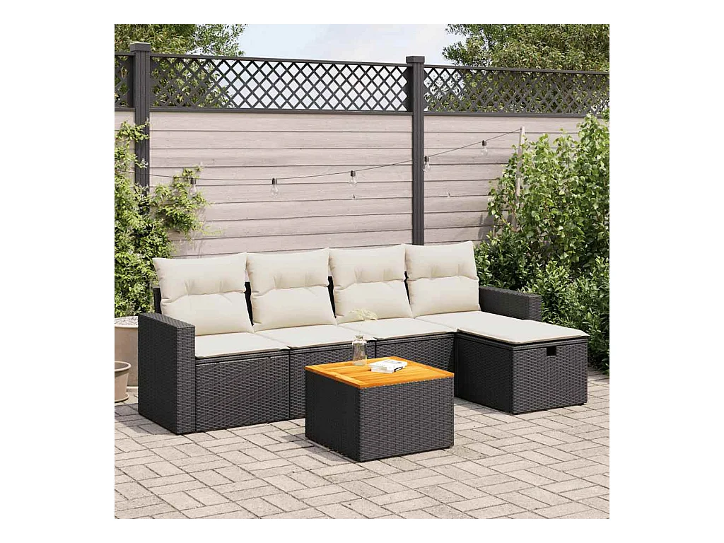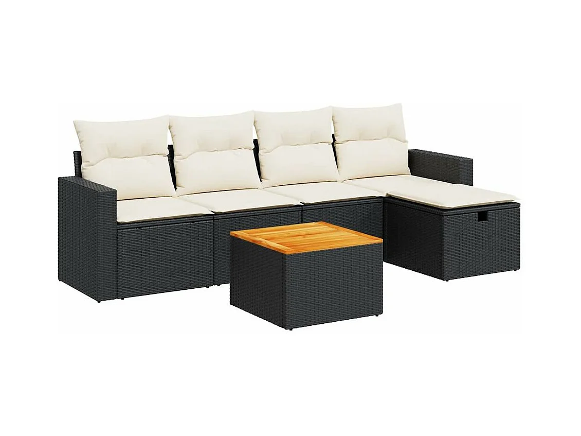 6-delige Loungeset met kussens poly rattan acacia zwart