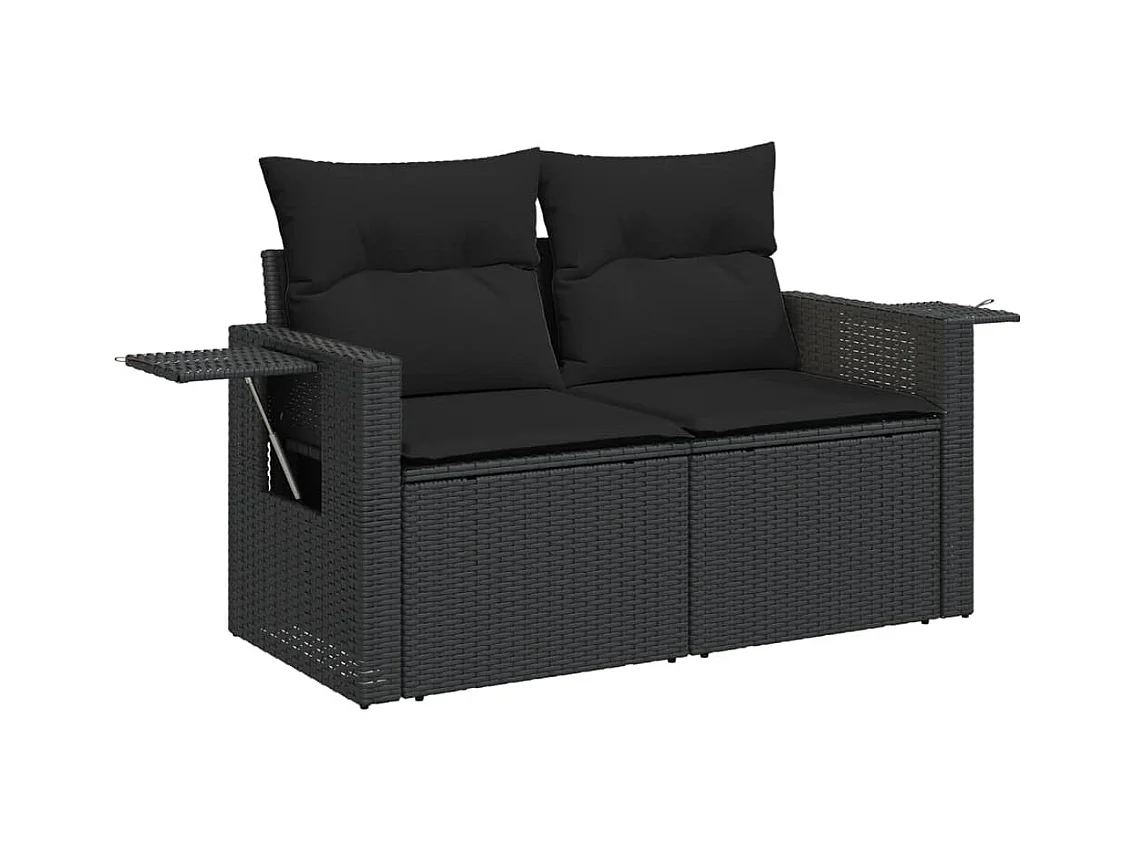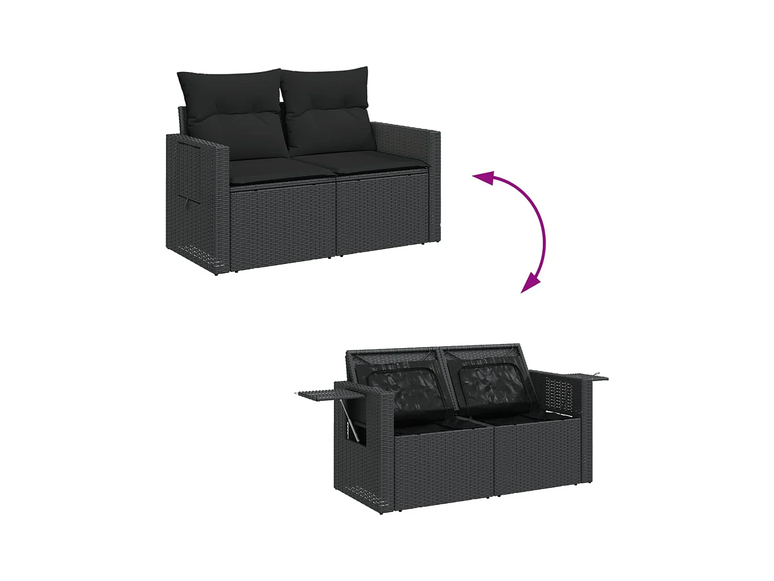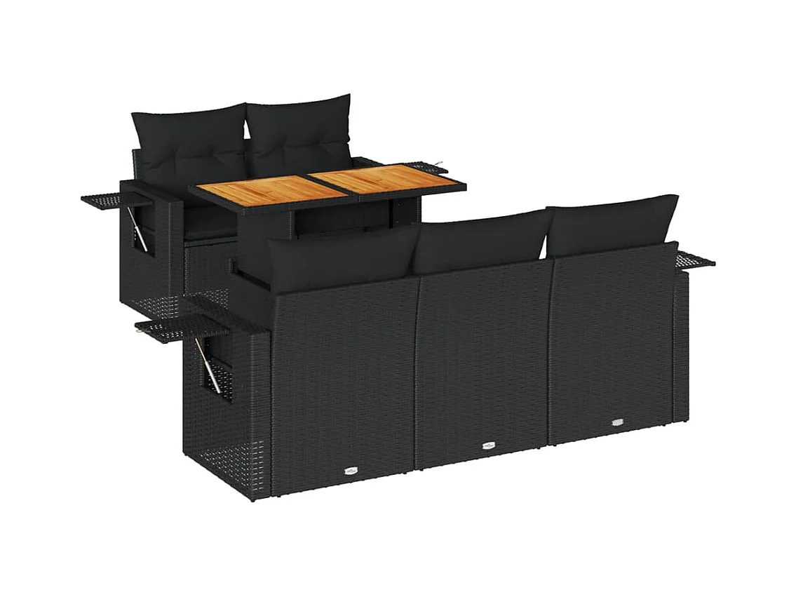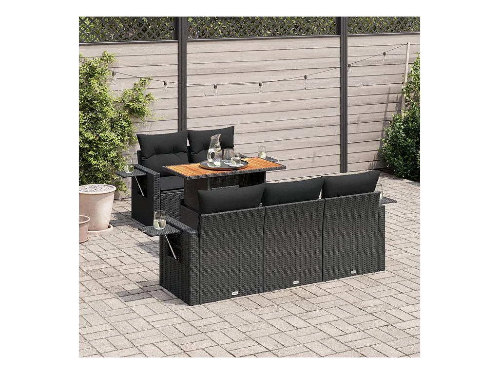6-delige Loungeset met kussens poly rattan acacia zwart