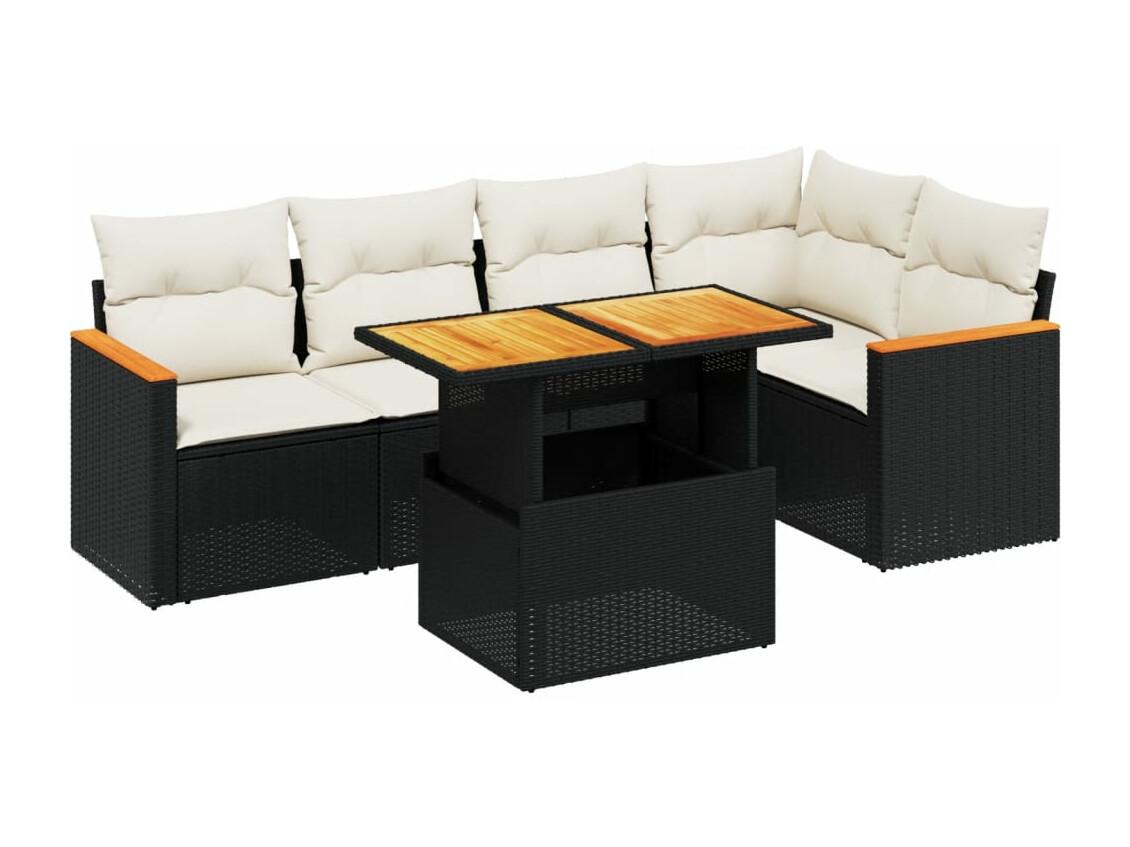 5-delige Loungeset met kussens poly rattan zwart NL41976