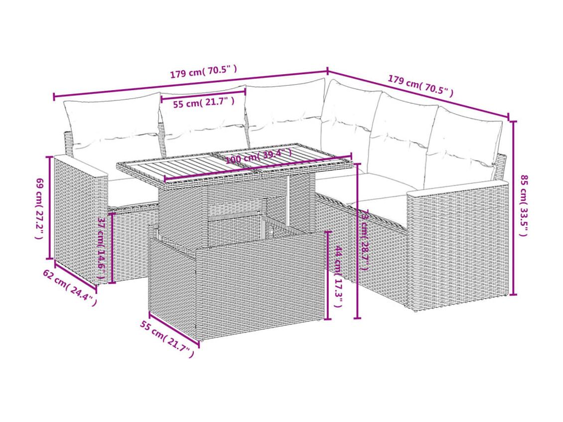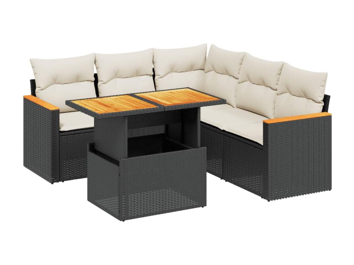 6-delige Loungeset met kussens poly rattan zwart