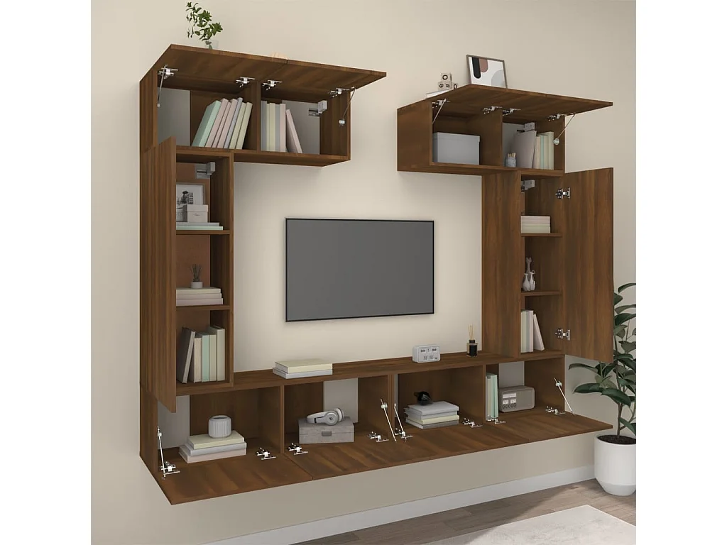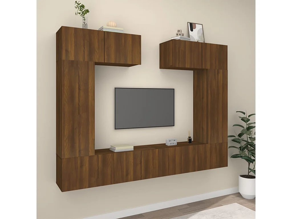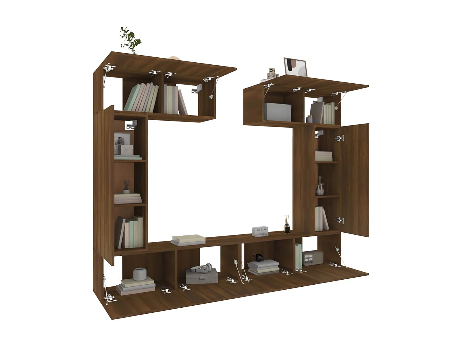 6-delige Tv-meubelset bewerkt hout bruin eikenkleur NL32123