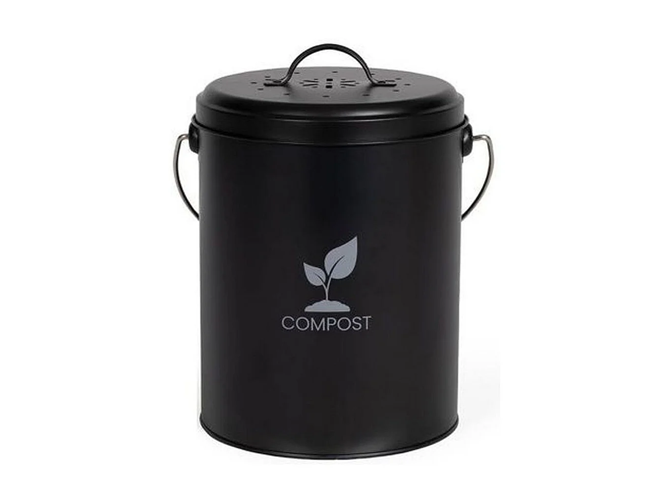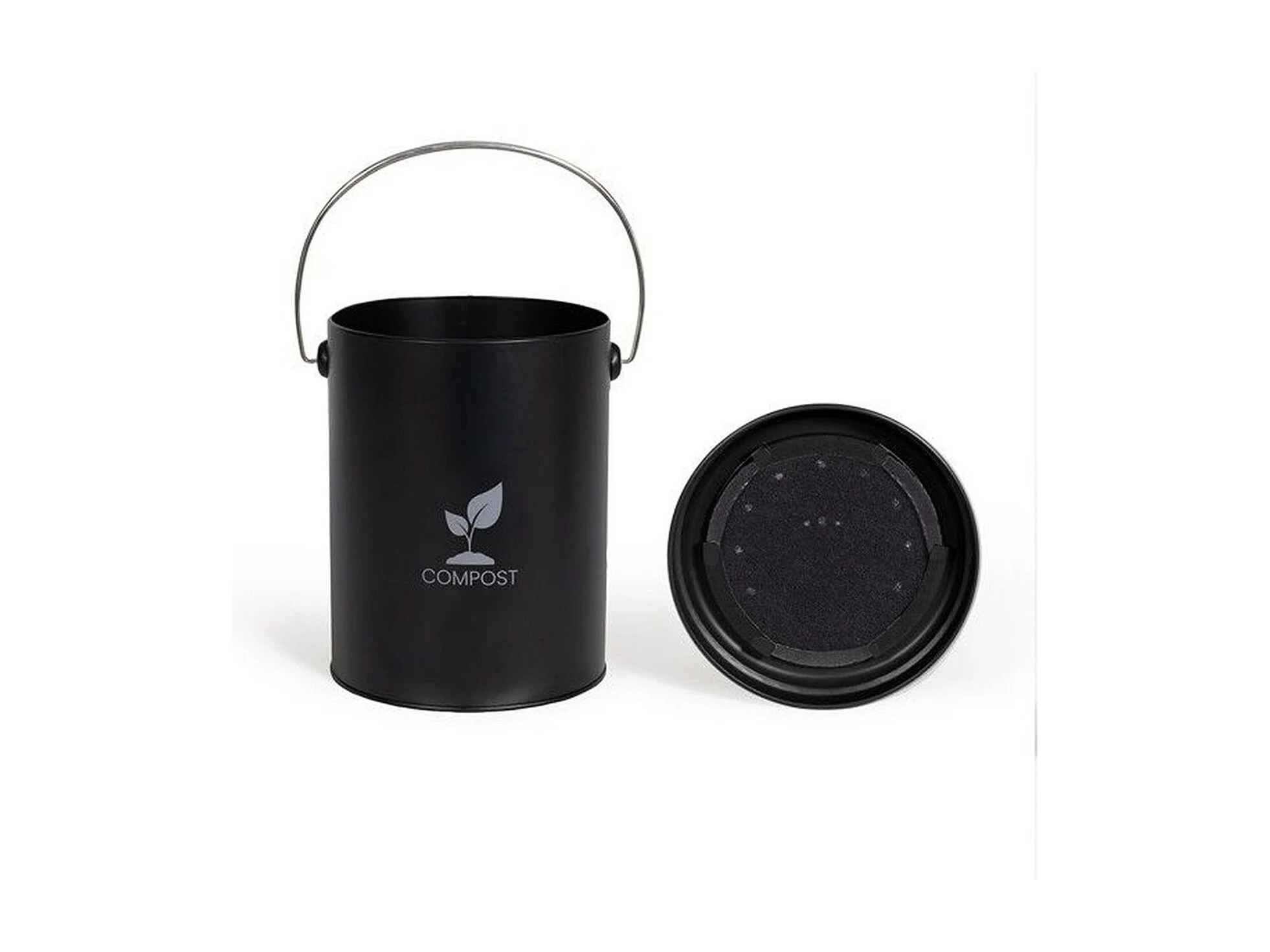 6 L zwarte metalen keukencompostemmer met actief koolstoffilter, compact en praktisch, Ø18 cm x H23 cm