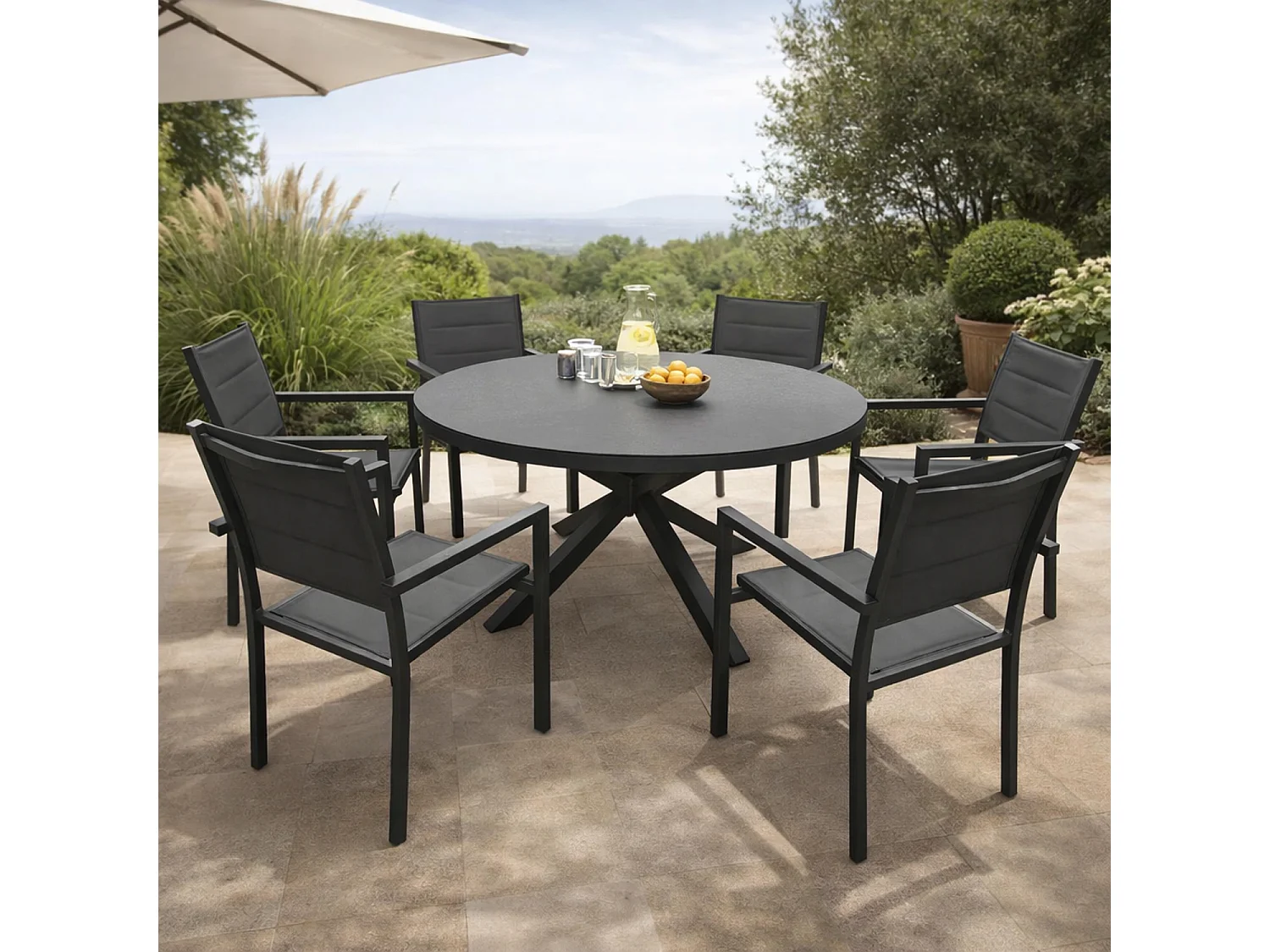 6-persoons grijs textilene GIALOVA tuinmeubelset - antraciet aluminium