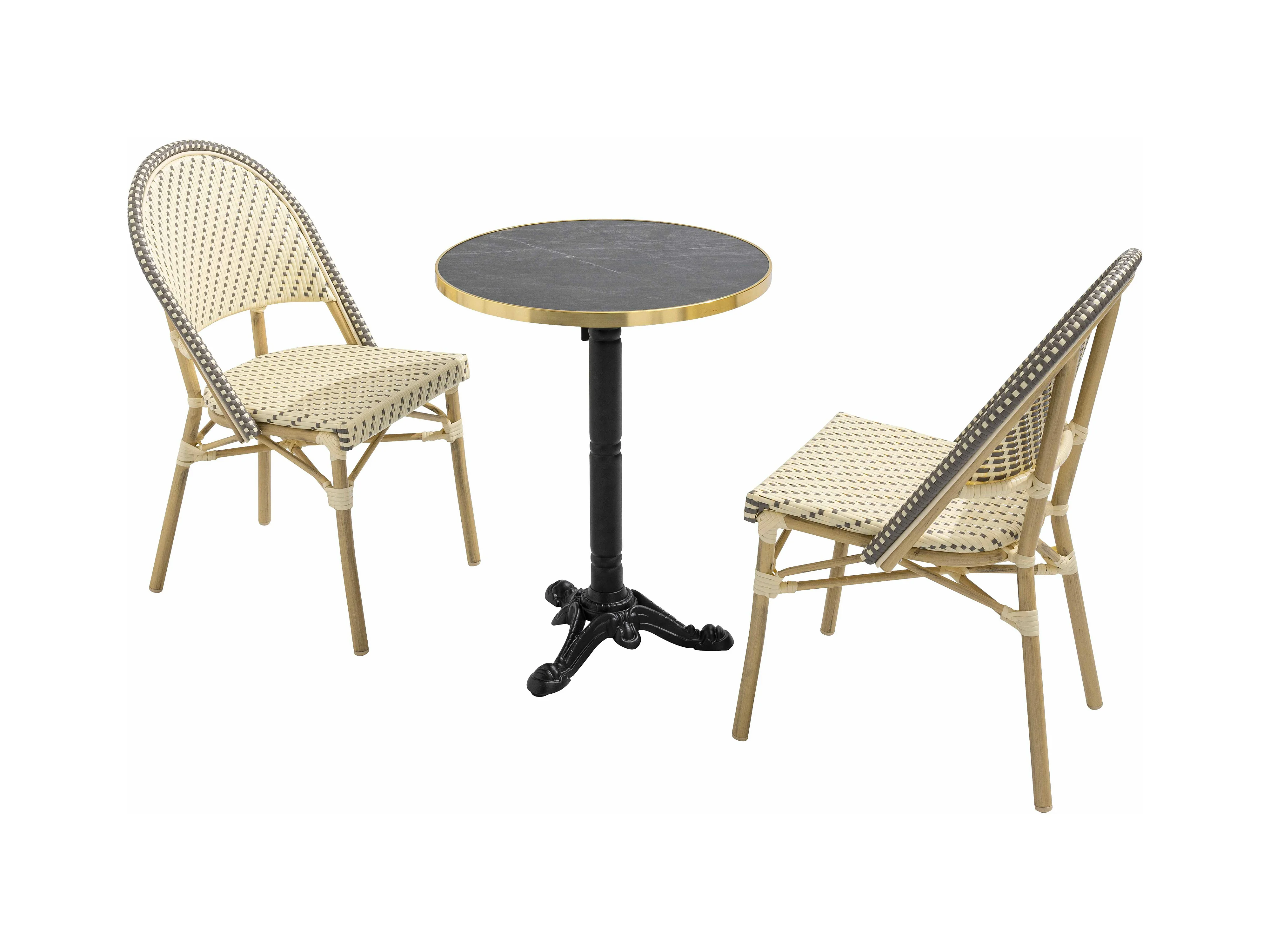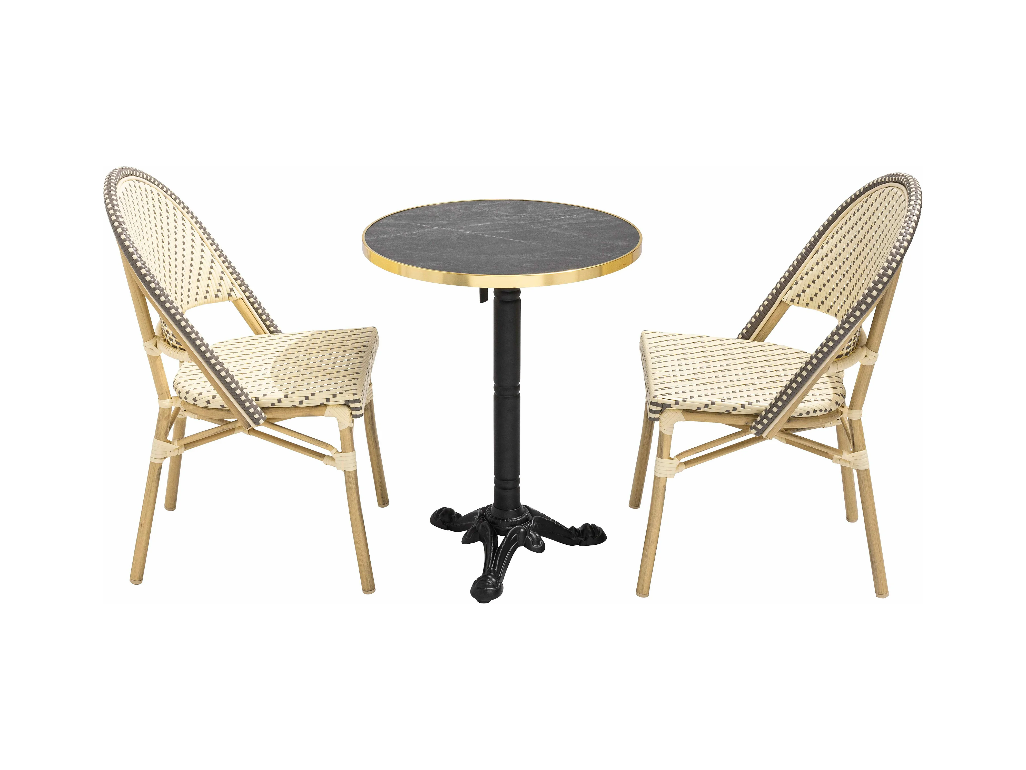 60 cm verstelbare zwartmarmeren terrastafel en 2 grijze stoelen