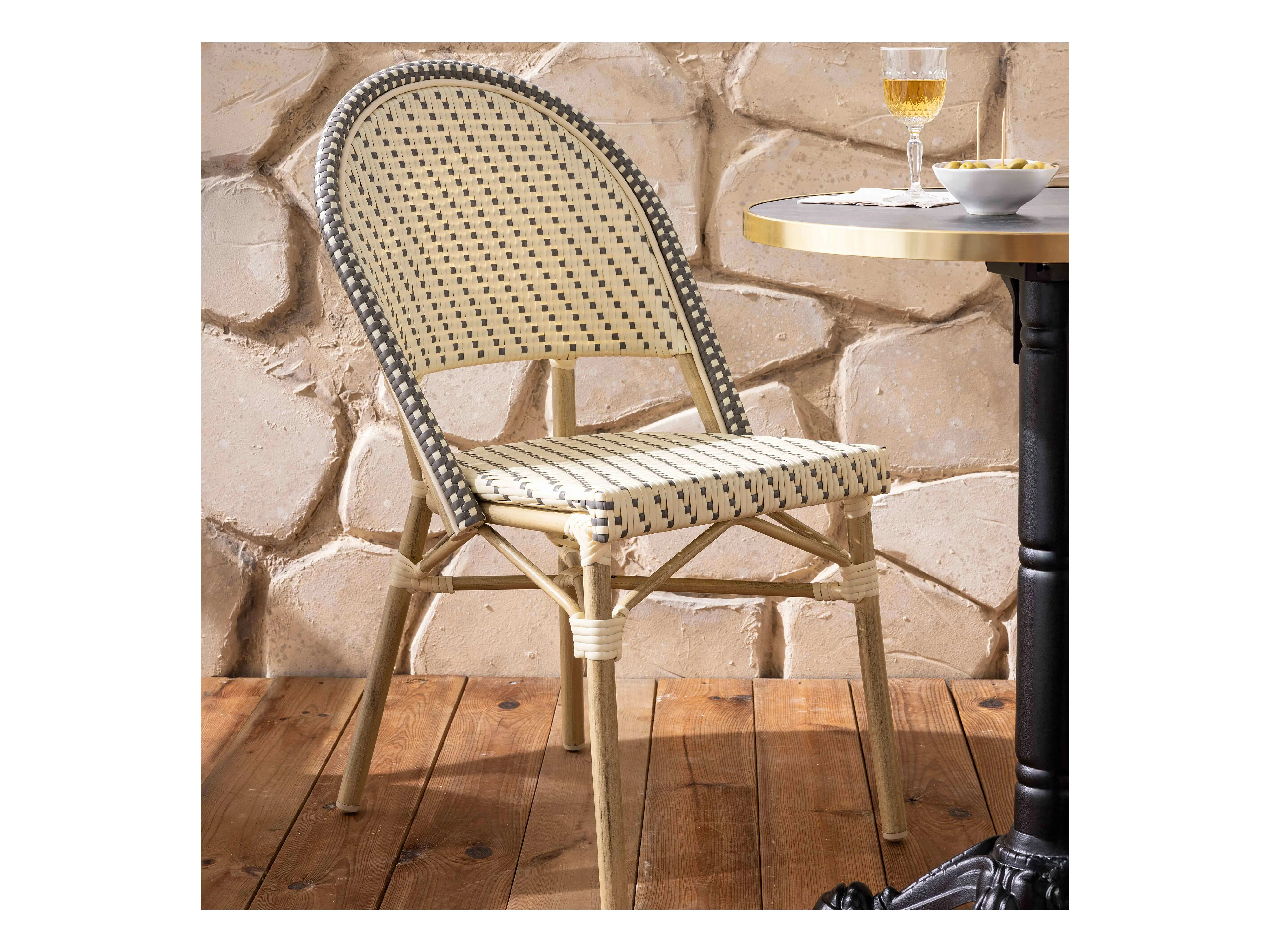 Tuintafel met marmeren laminaat en 2 grijze Palavas fauteuils