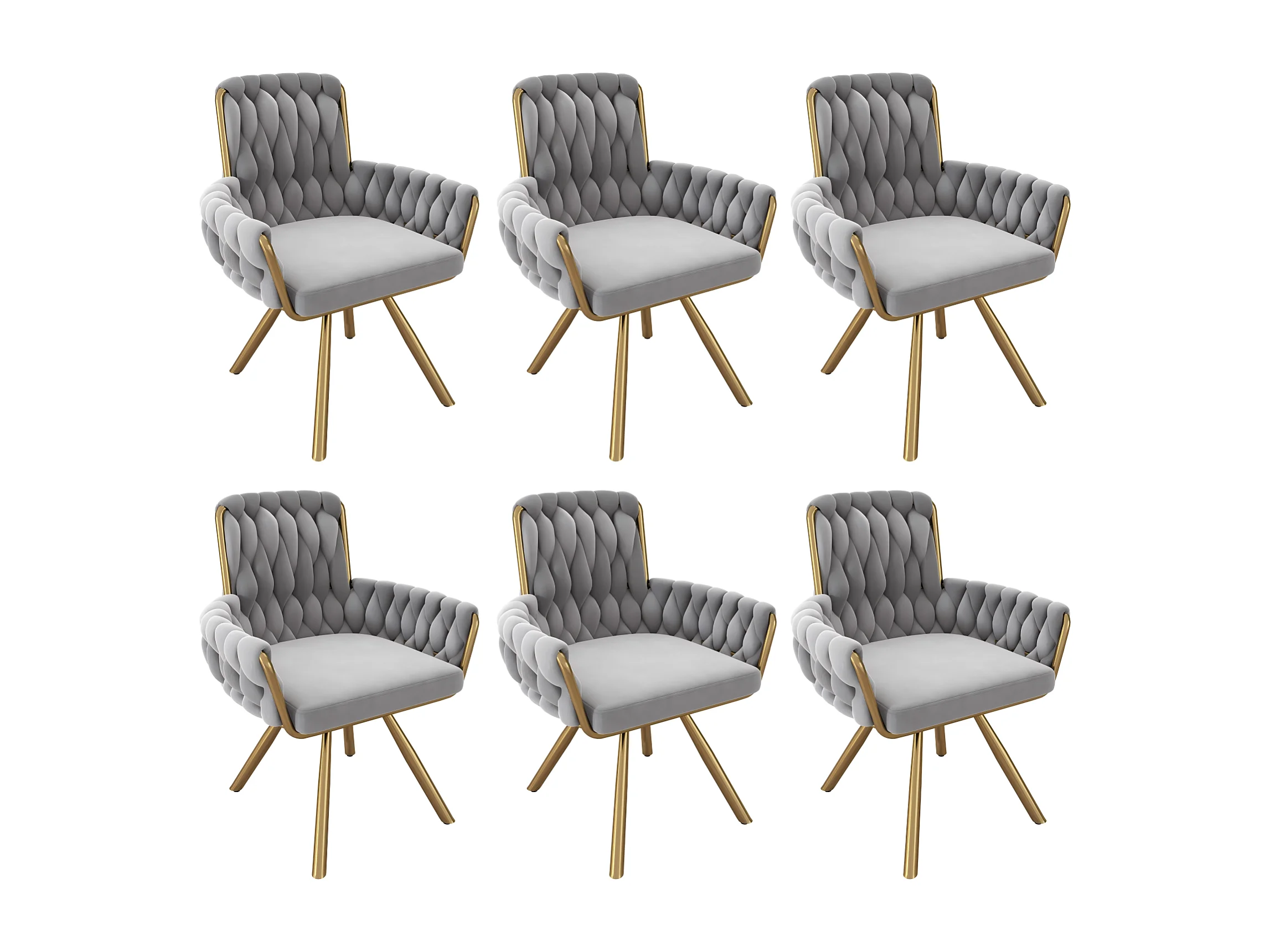 6Stks Draaistoel van fluweel, met armleuningen en metalen poten, ruime rugleuning, Grijs, 63x50x87cm