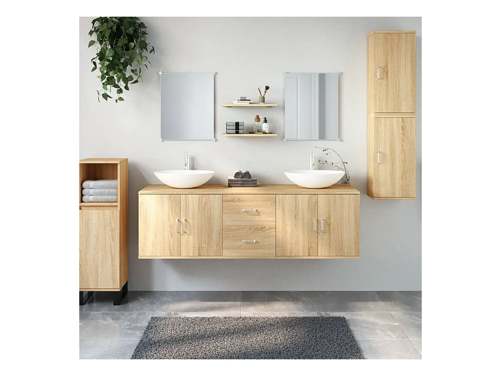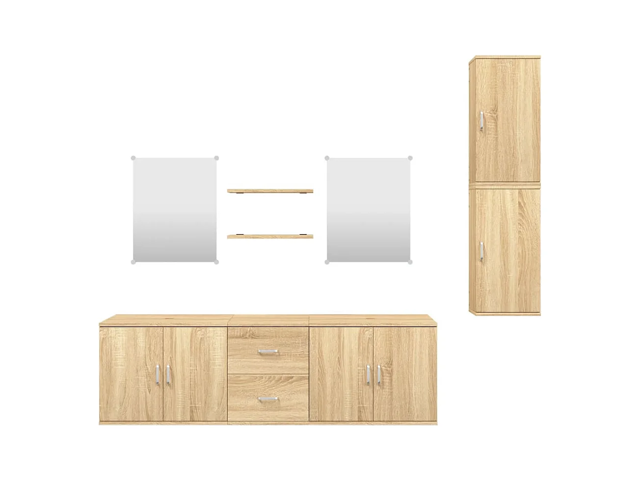 7-delige Badkamermeubelset bewerkt hout eikenkleurig BE429670