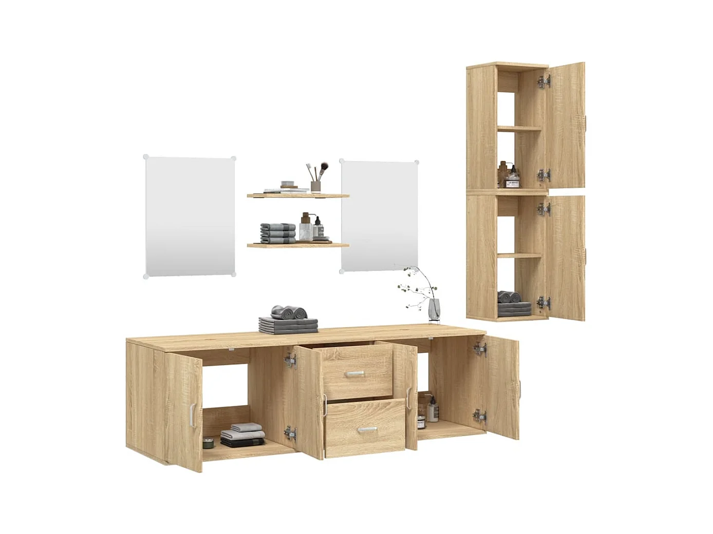 5-delige Badkamermeubelset bewerkt hout eikenkleurig BE248975