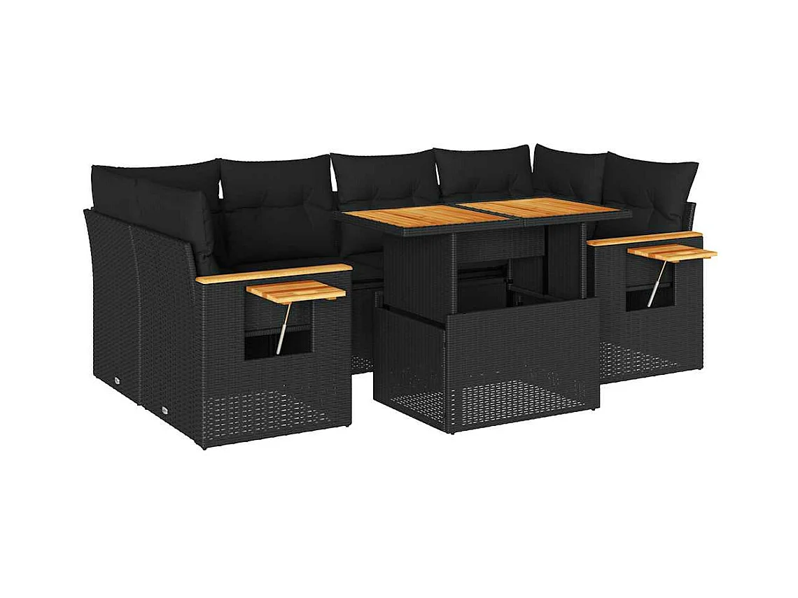 7-delige Loungeset met kussens poly rattan acacia zwart