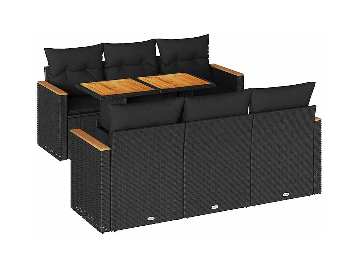 7-delige Loungeset met kussens poly rattan acacia zwart