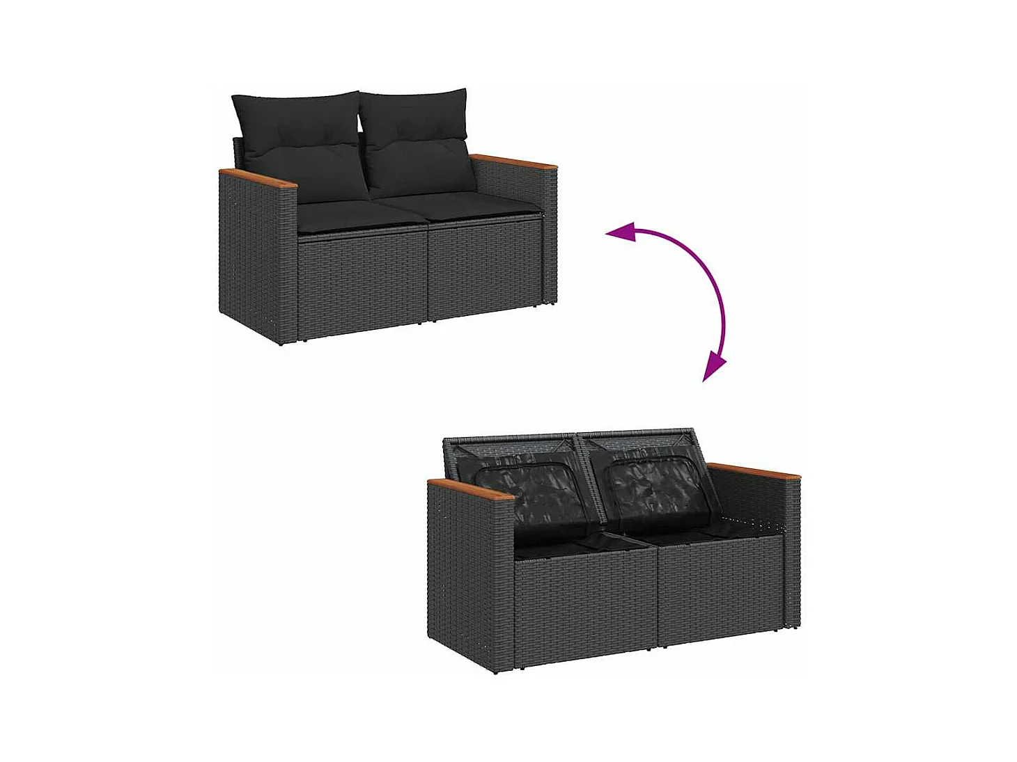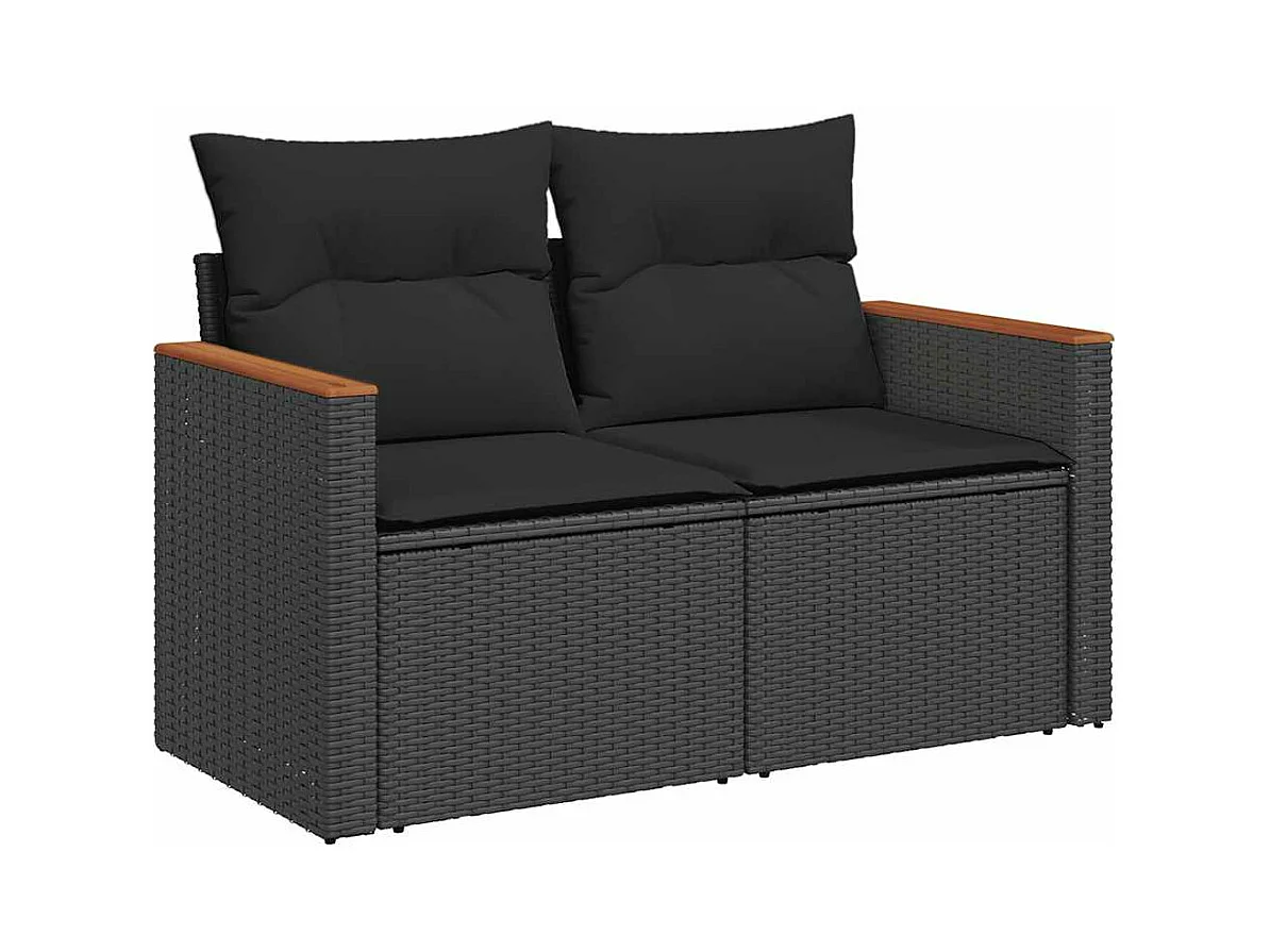 8-delige Loungeset met kussens poly rattan acacia zwart