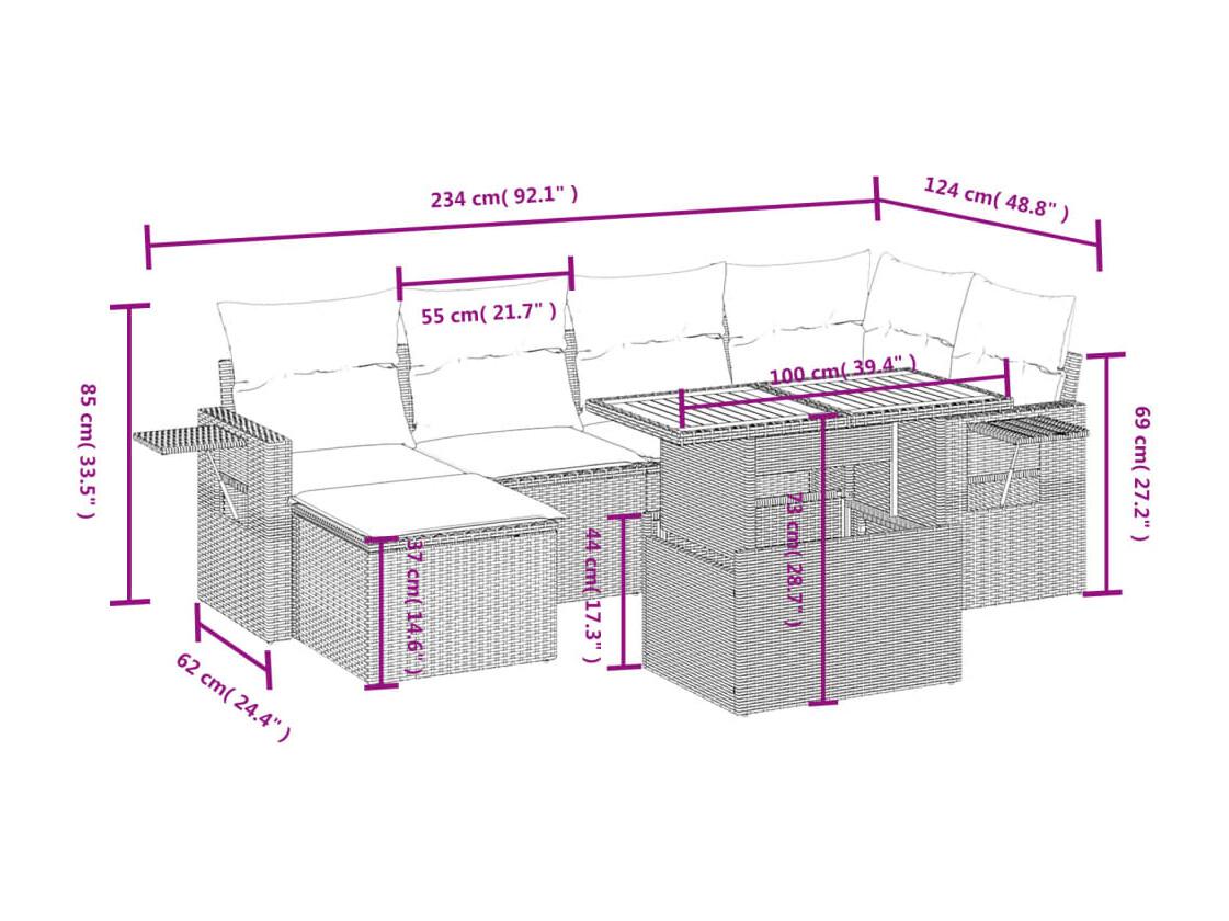 7-delige Loungeset met kussens poly rattan beige